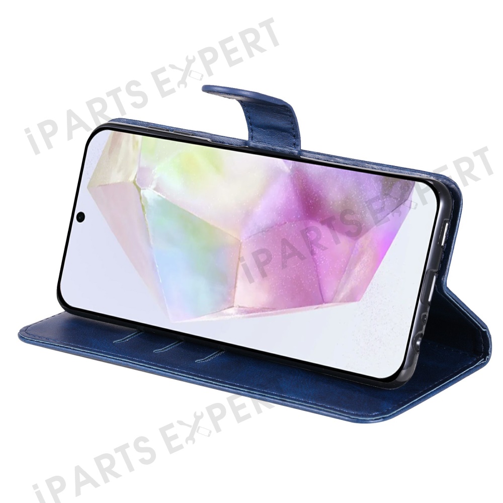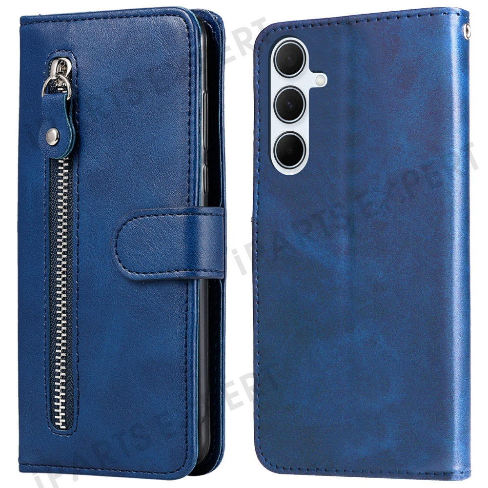 For Samsung Galaxy A36 5G Case Zipper Wallet Calf Texture PU Leather Phone Cover - Blue