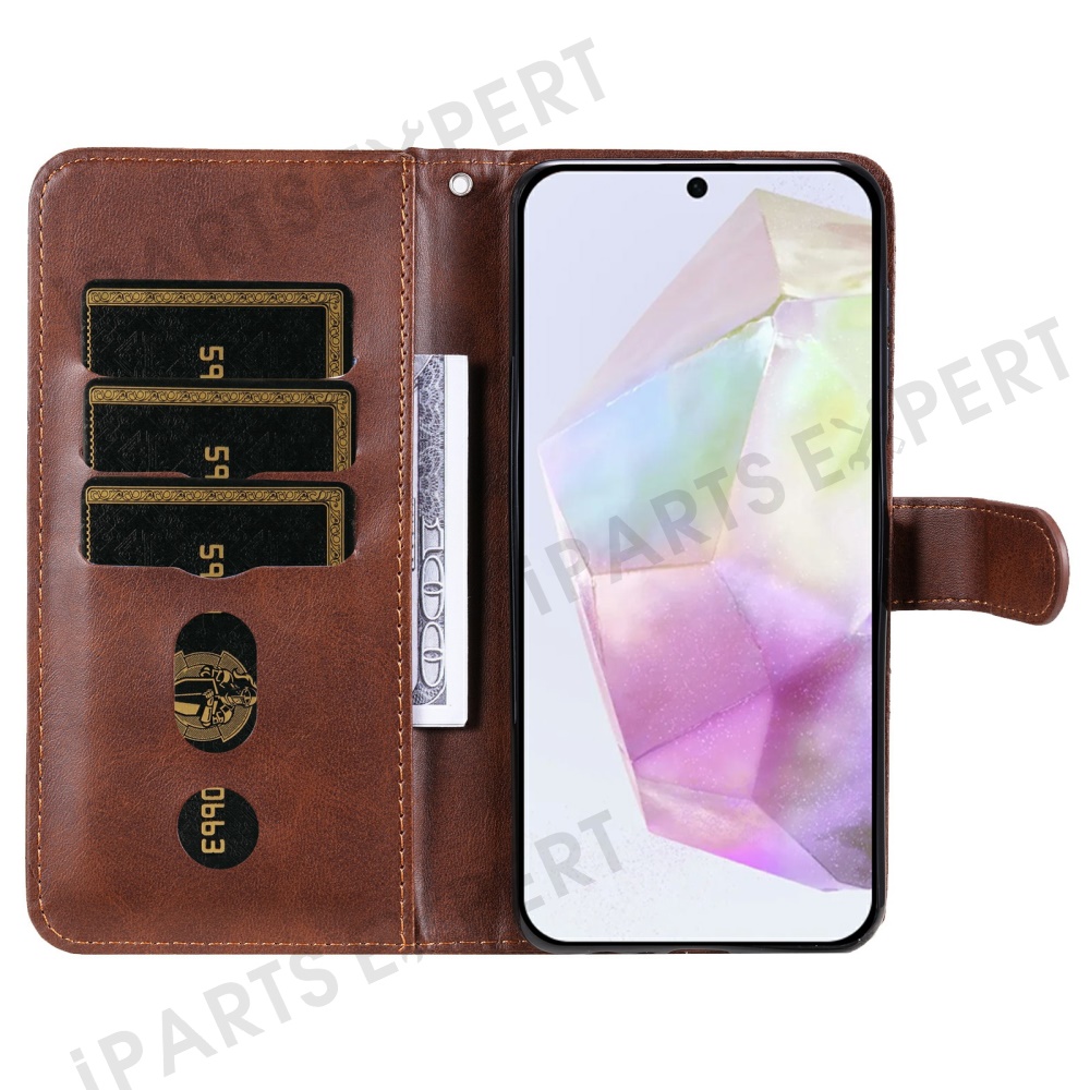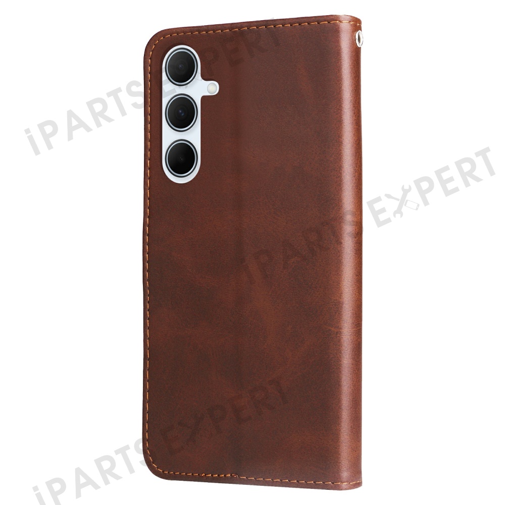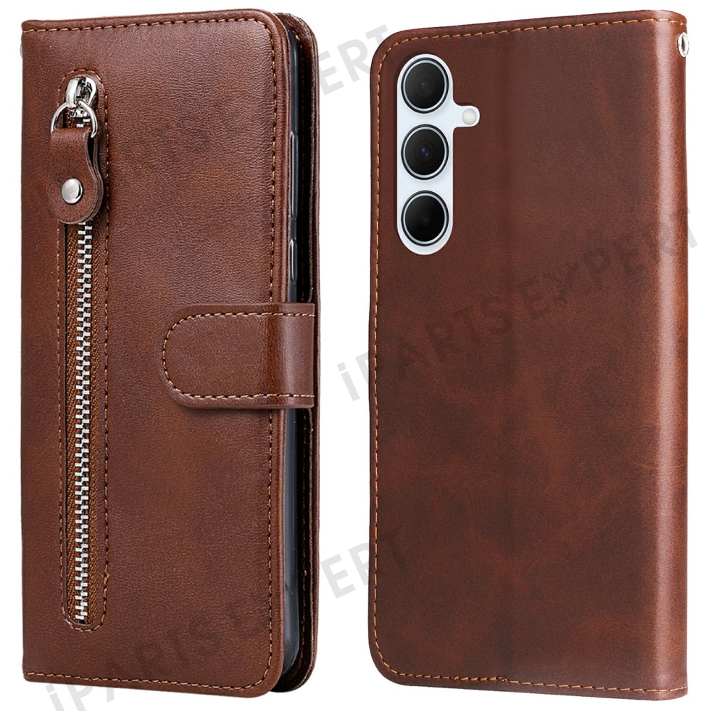 For Samsung Galaxy A36 5G Case Zipper Wallet Calf Texture PU Leather Phone Cover - Brown
