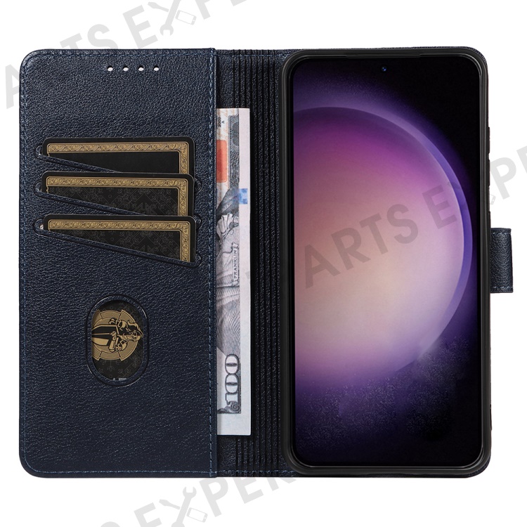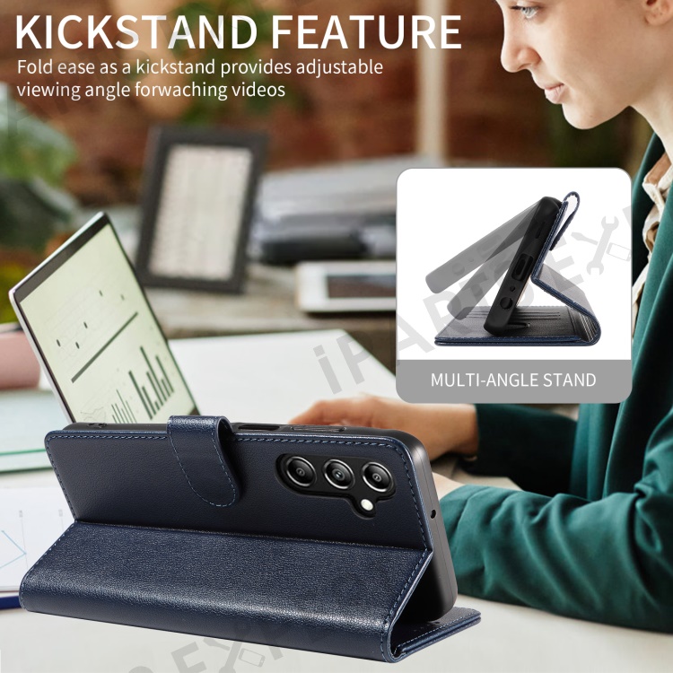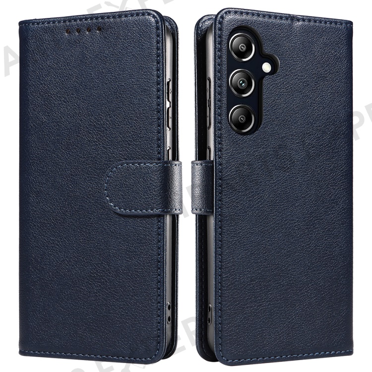 For Samsung Galaxy A36 5G Leather Case Litchi Texture RFID Blocking Wallet Stand Phone Cover - Dark Blue
