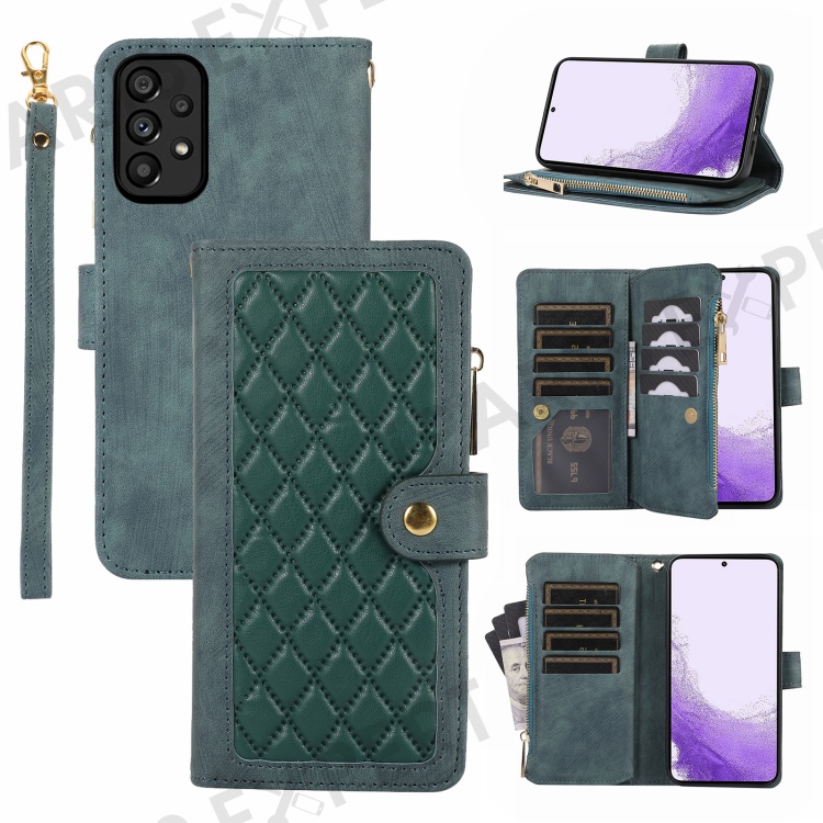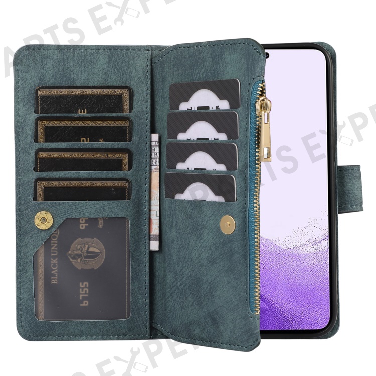 For Samsung Galaxy A52 4G / 5G / A52s 5G Leather Phone Case Multiple Card Slots Zipper Pocket Cover - Green