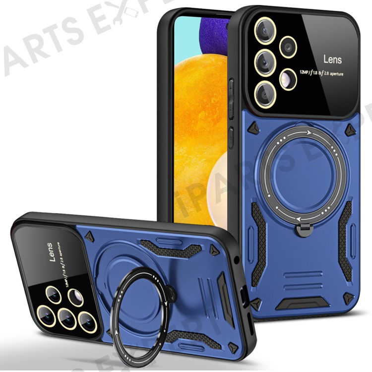 For Samsung Galaxy A52 4G / A52s 5G / A52 5G Ring Kickstand Case PC+TPU Phone Cover Magnetic Case - Blue