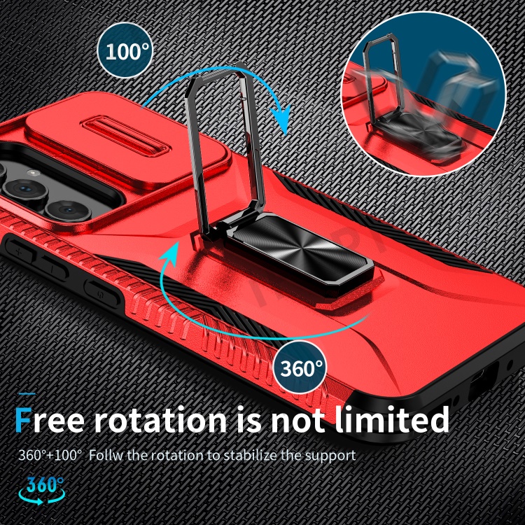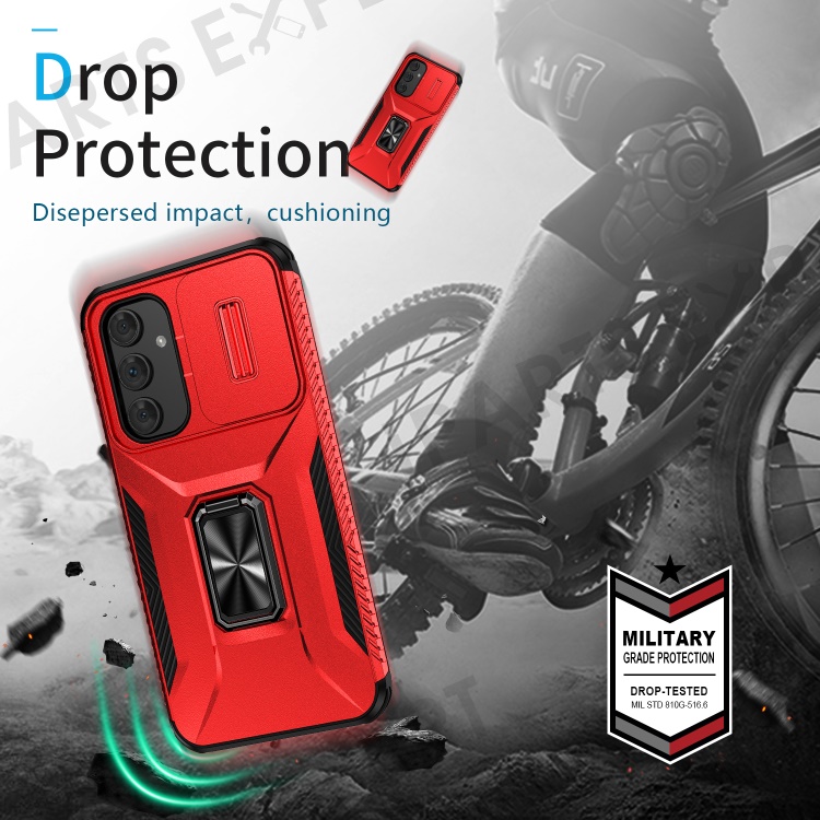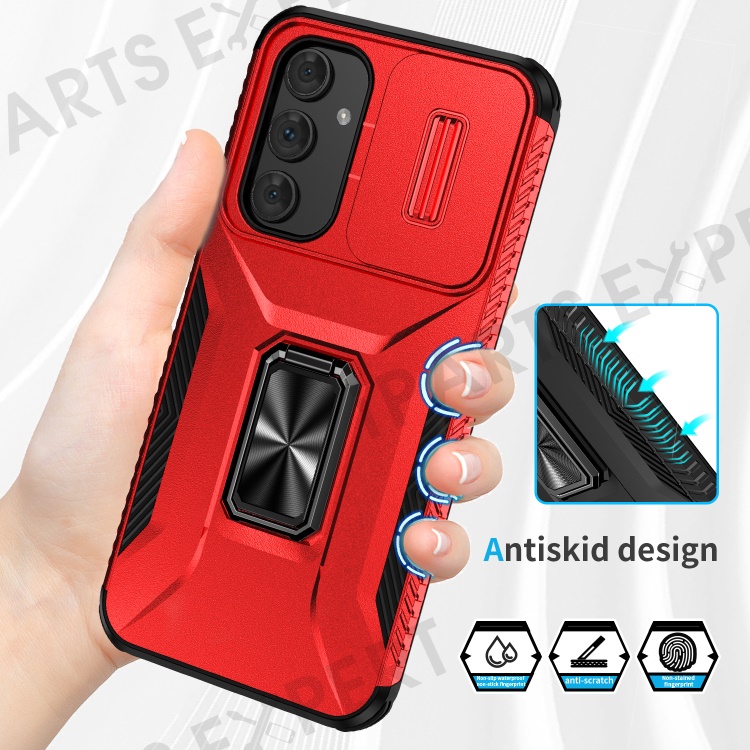 For Samsung Galaxy A54 5G Case Slide Lens Protection Phone Kickstand Cover - Red