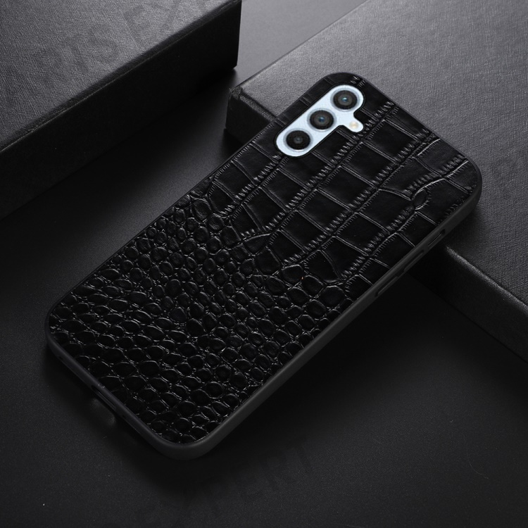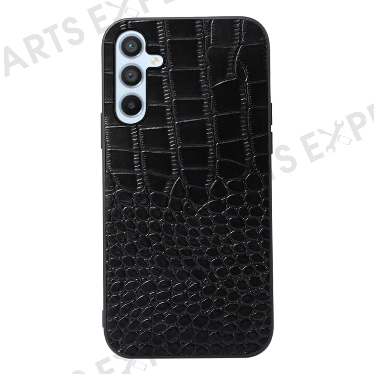 For Samsung Galaxy A54 5G Crocodile Texture Phone Case Genuine Cowhide Leather Coated PC+TPU Protective Back Cover - Black