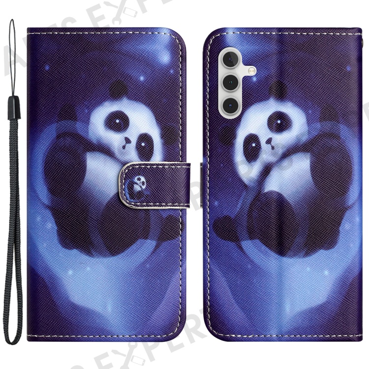 For Samsung Galaxy A54 5G Cross Texture PU Leather Flip Phone Cover 3D Pattern Printing Wallet Stand Magnetic Case - Panda