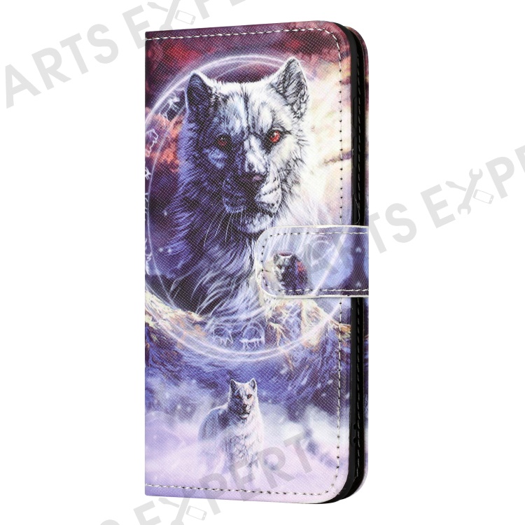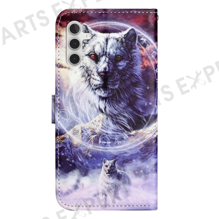 For Samsung Galaxy A54 5G Cross Texture PU Leather Flip Phone Cover 3D Pattern Printing Wallet Stand Magnetic Case - Snow Wolf