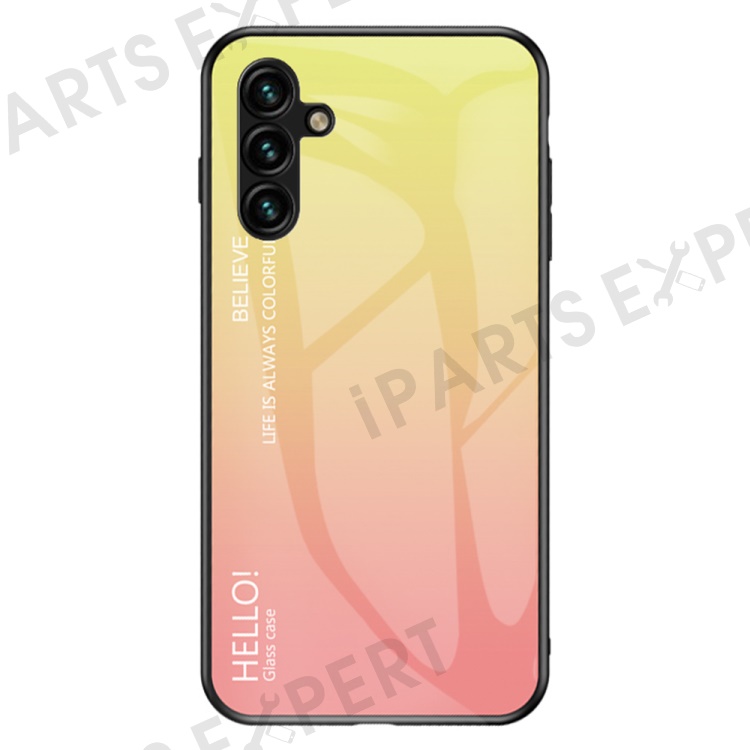 For Samsung Galaxy A54 5G Gradient Color Bump Proof Phone Case Tempered Glass Hard PC Soft TPU Anti-drop Hybrid Cover - Gradient Yellow