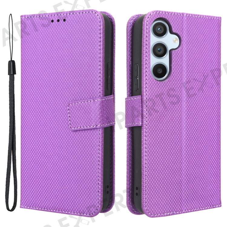 For Samsung Galaxy A54 5G Magnetic Clasp Protective Phone Cover Diamond Texture PU Leather Anti-drop Phone Case with Foldable Stand Wallet - Purple