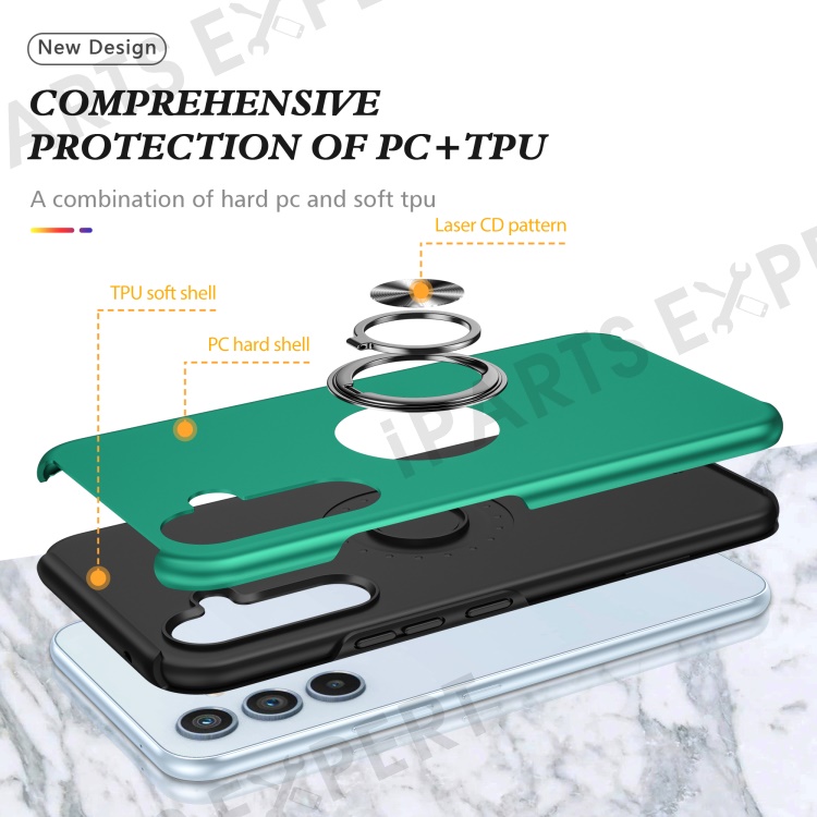 For Samsung Galaxy A54 5G PC+TPU Drop-proof Cover Rotary Ring Kickstand Phone Case - Blackish Green