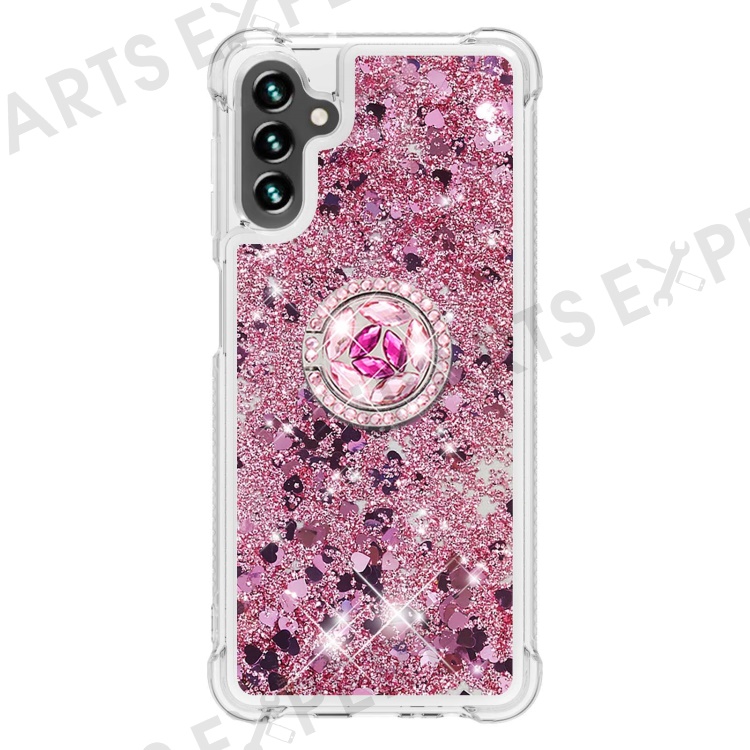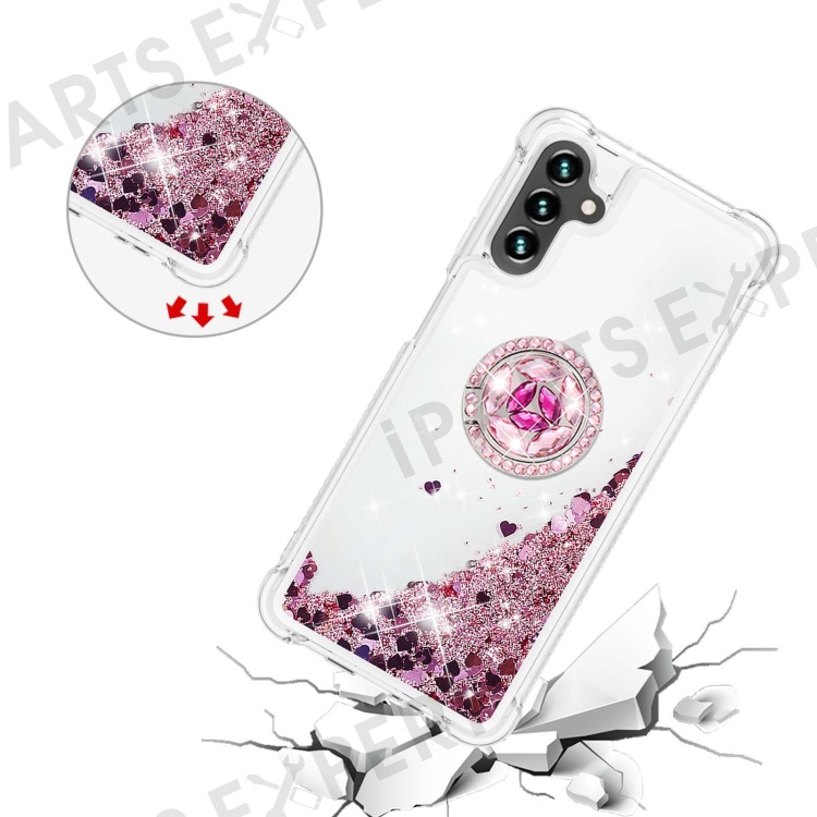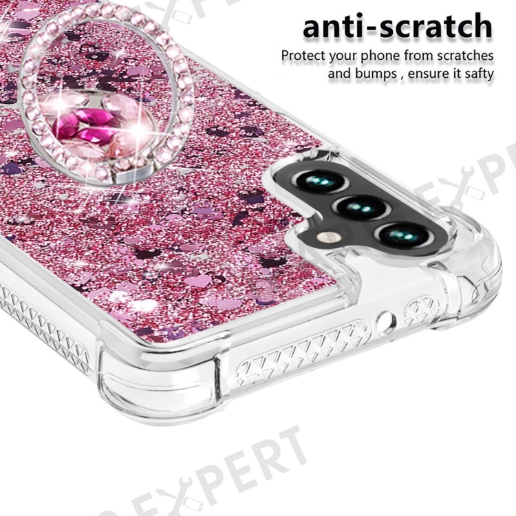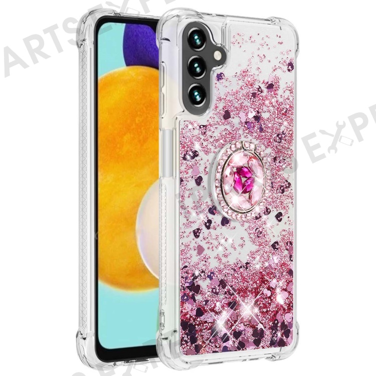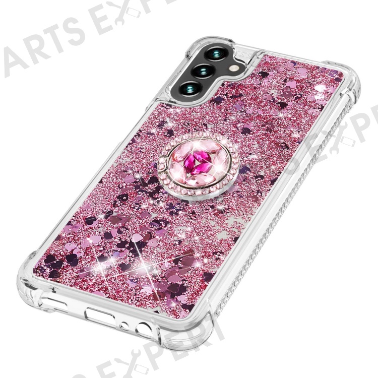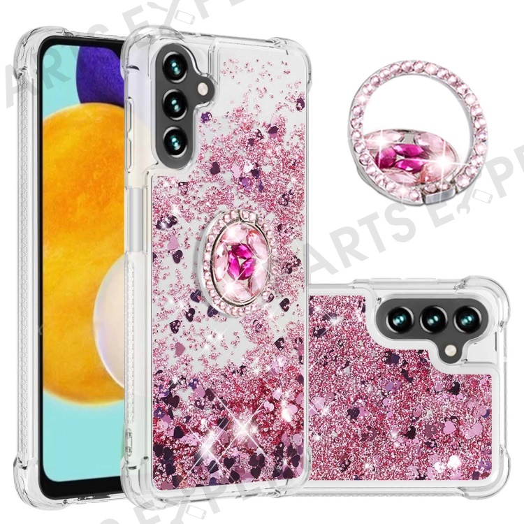 For Samsung Galaxy A54 5G TPU Case with Kickstand Quicksand Shockproof Cover - Rose Gold / Hearts