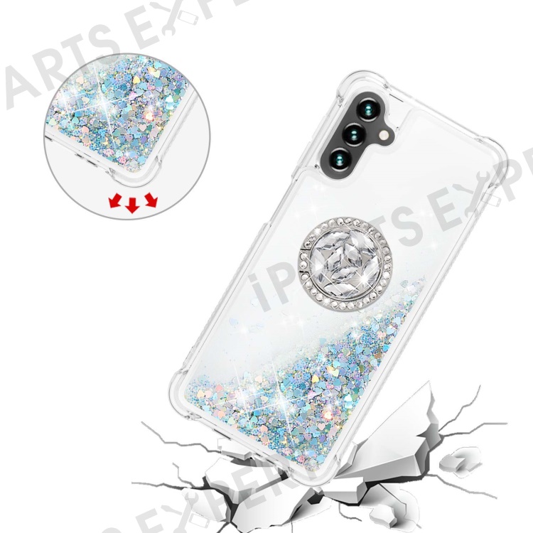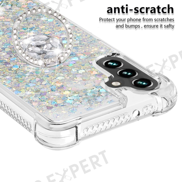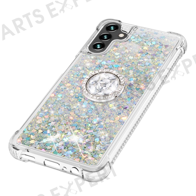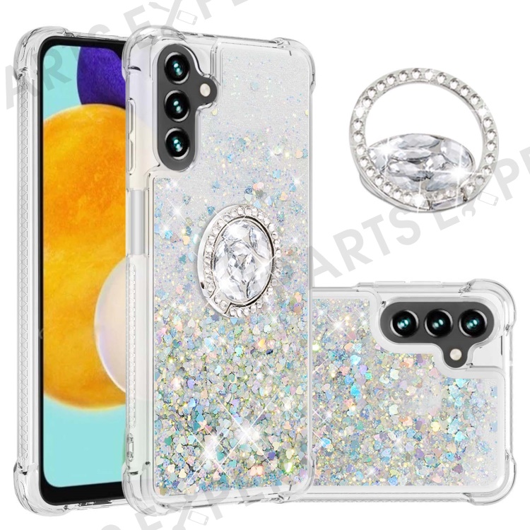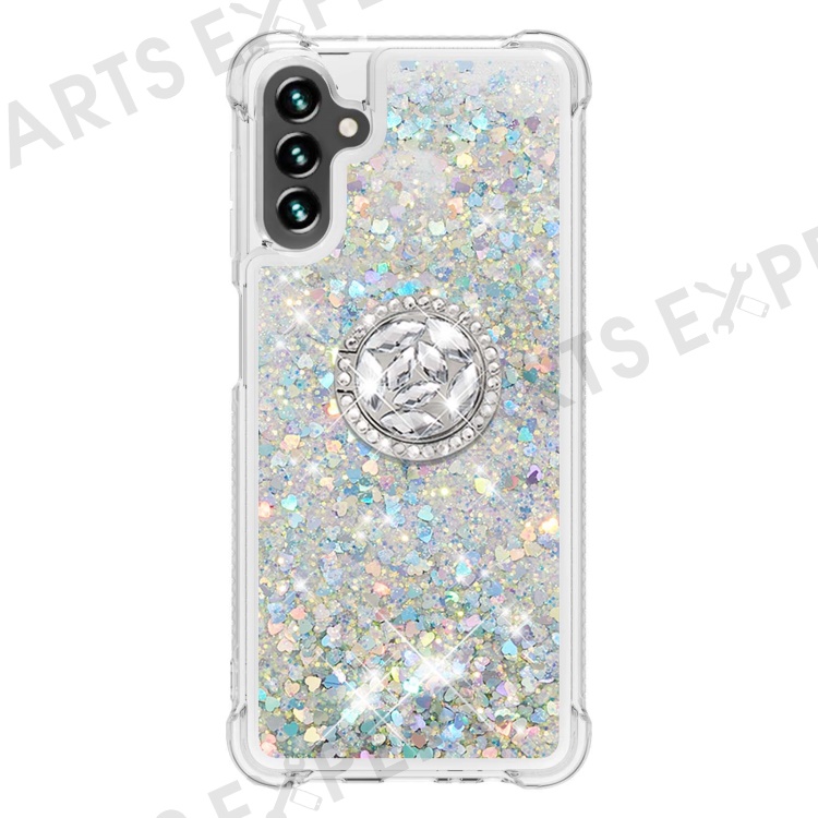 For Samsung Galaxy A54 5G TPU Case with Kickstand Quicksand Shockproof Cover - Silver / Hearts
