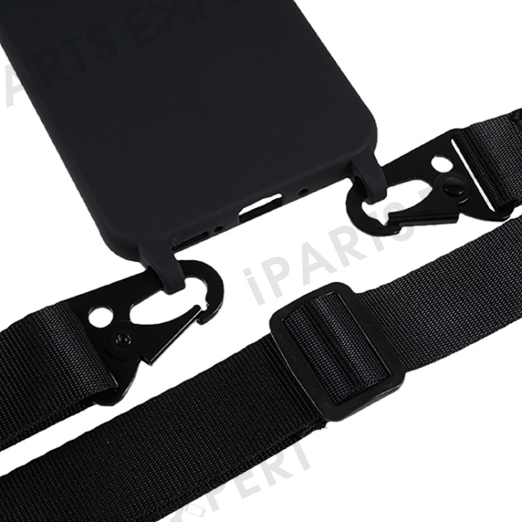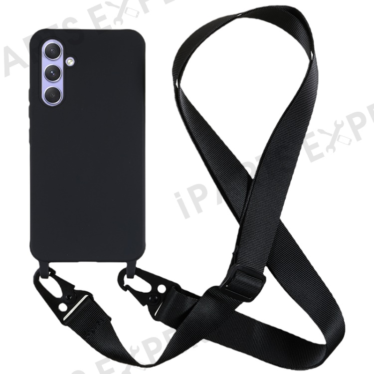 For Samsung Galaxy A54 5G Soft TPU Case Matte Finish Phone Protector with Wide Lanyard - Black