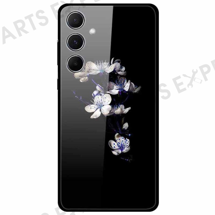 For Samsung Galaxy A55 5G Case Anti-Scratch Tempered Glass Pattern Phone Cover - White Flowers