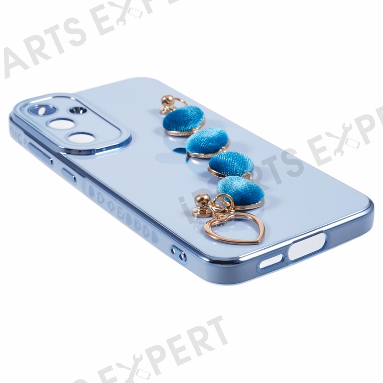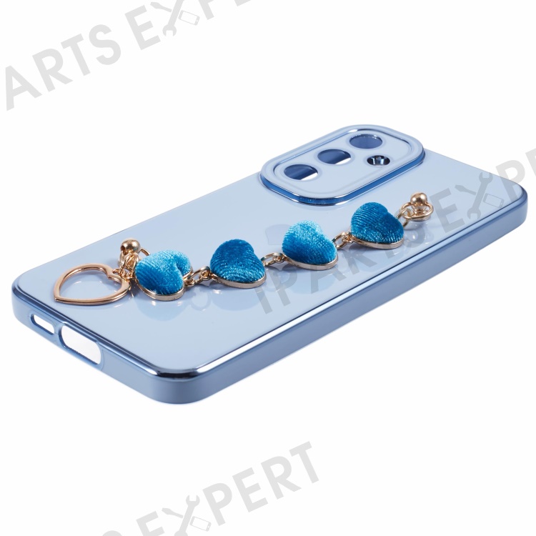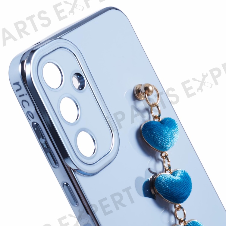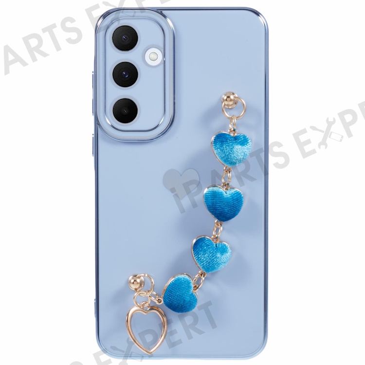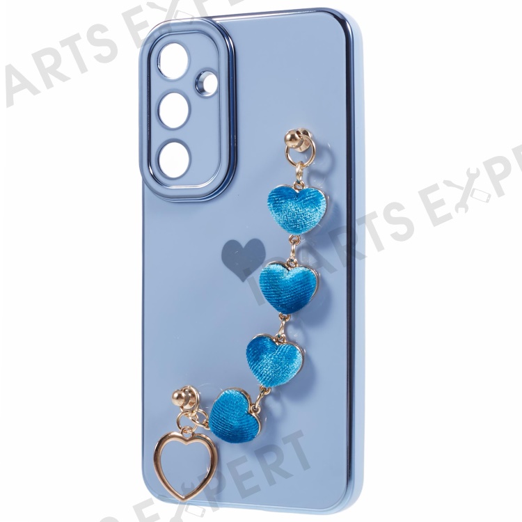 For Samsung Galaxy A55 5G Case Electroplating TPU Phone Cover Love Heart Pattern with Wrist Chains - Blue