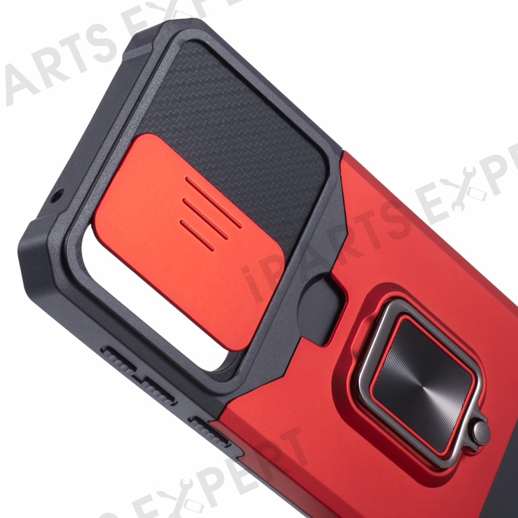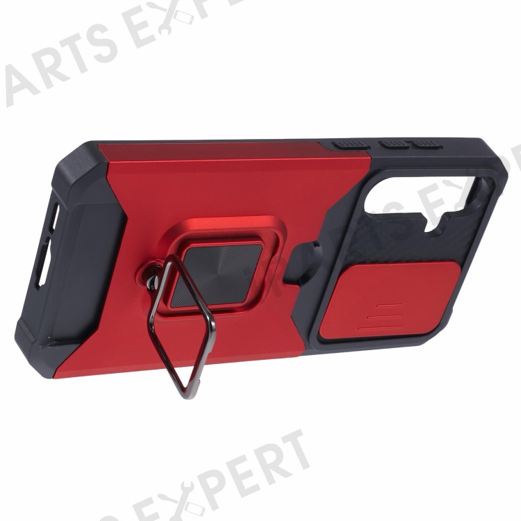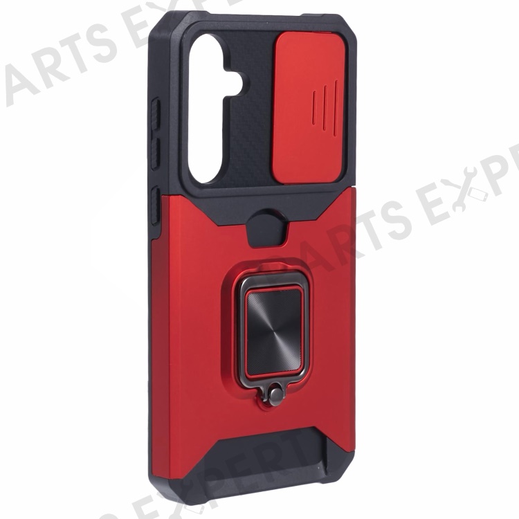 For Samsung Galaxy A55 5G Case PC+TPU Card Holder Phone Kickstand Cover with Slide Lens Lid - Red