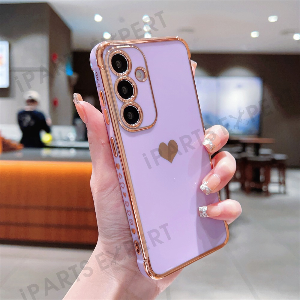 For Samsung Galaxy A55 5G Case TPU Phone Back Cover Electroplating Heart Pattern - Purple