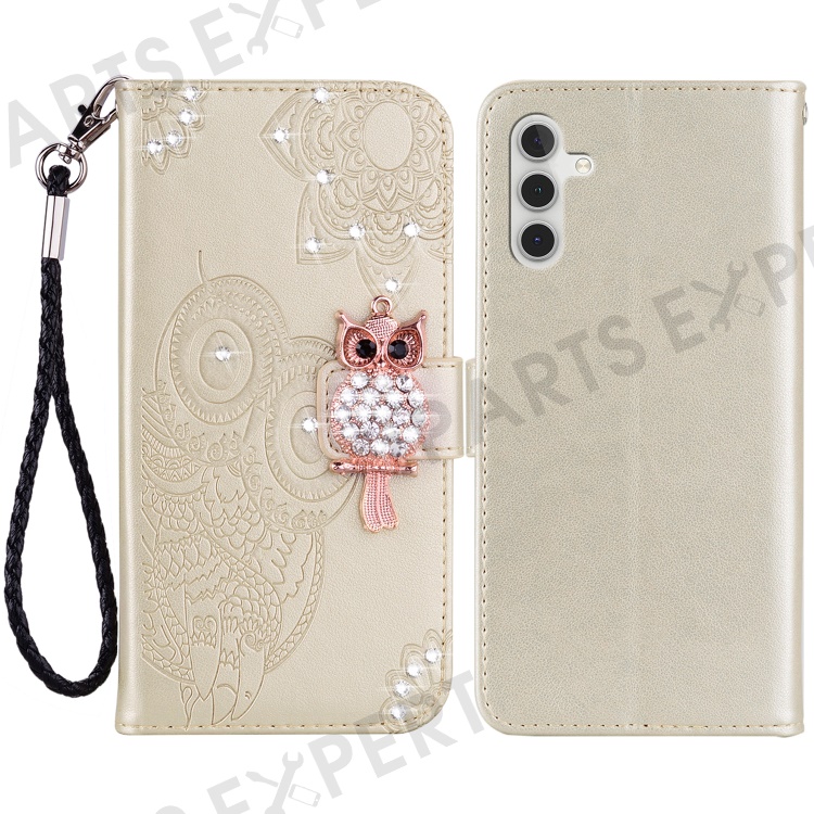 For Samsung Galaxy A55 5G Leather Case Rhinestone Wallet Phone Cover with Stand - Gold