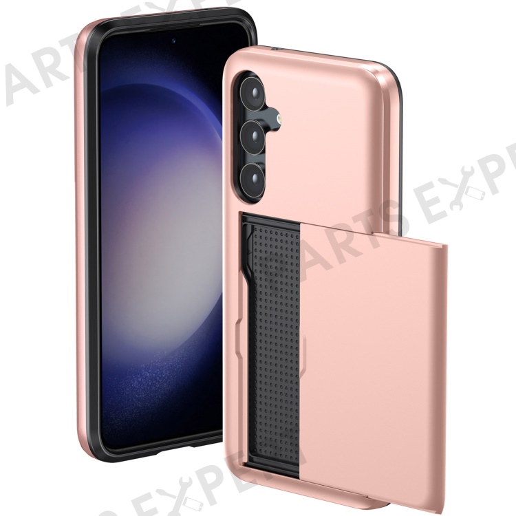 For Samsung Galaxy A55 5G Phone Case TPU + PC Cover with Slide Card Holder - Rose Gold
