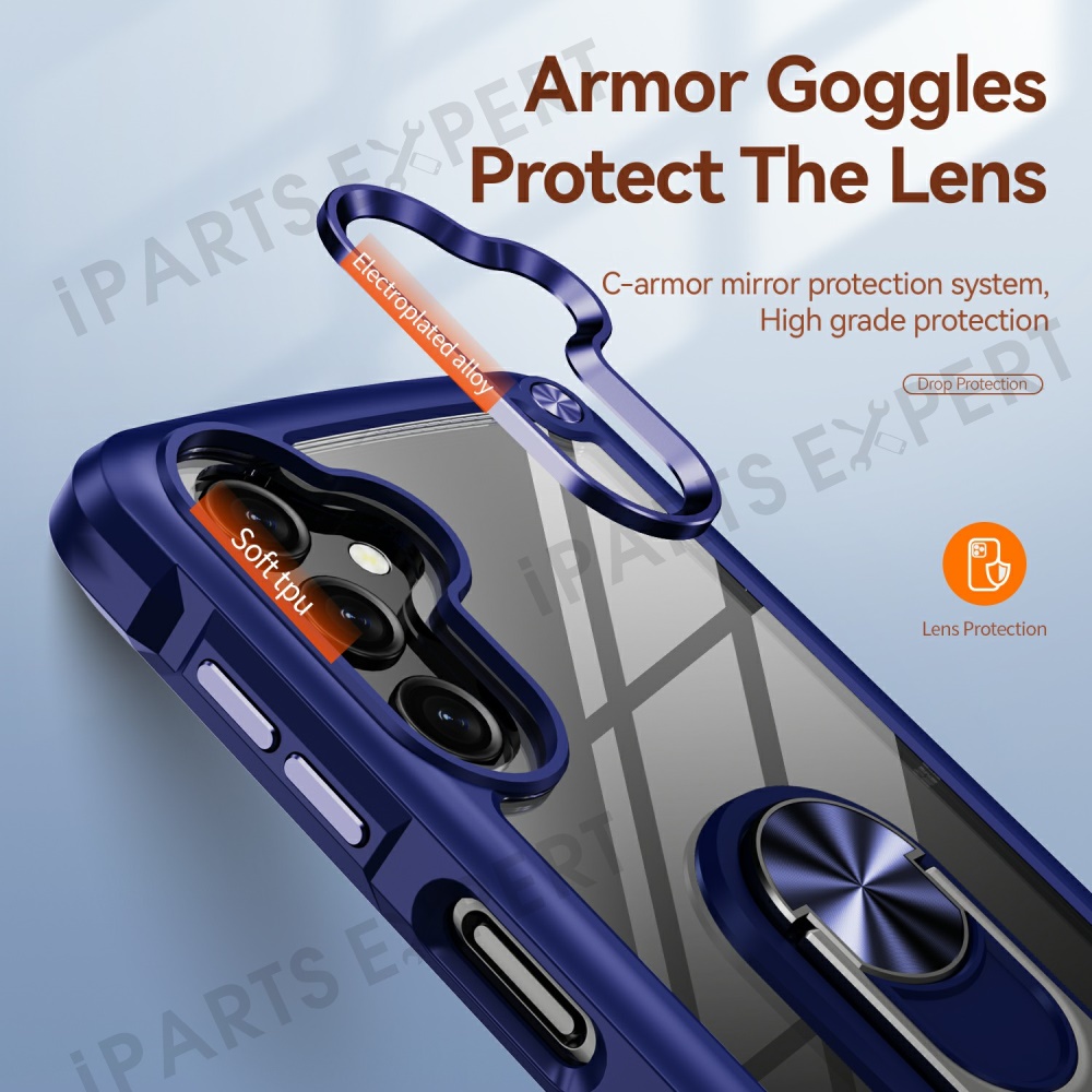 For Samsung Galaxy A56 5G Case Alloy Lens Frame PC + TPU Kickstand Phone Back Cover - Blue