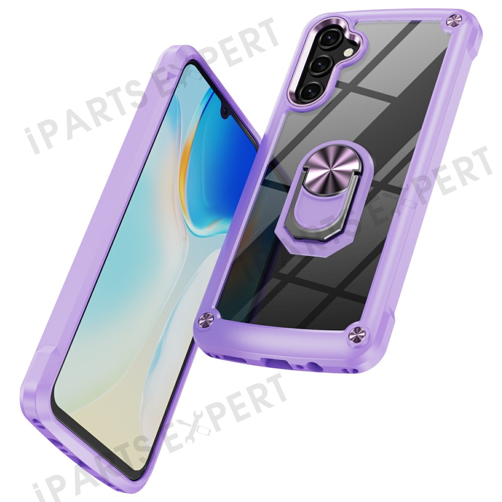 For Samsung Galaxy A56 5G Case Alloy Lens Frame PC + TPU Kickstand Phone Back Cover - Purple