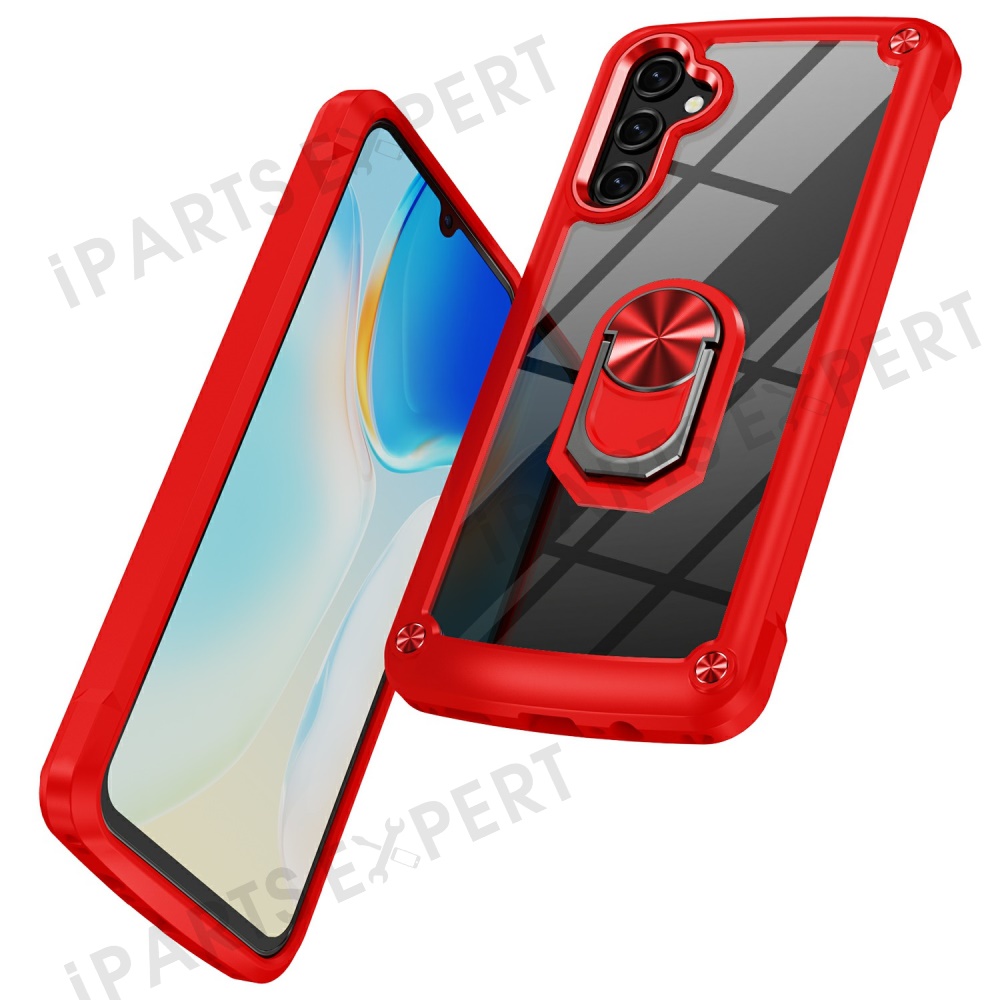 For Samsung Galaxy A56 5G Case Alloy Lens Frame PC + TPU Kickstand Phone Back Cover - Red