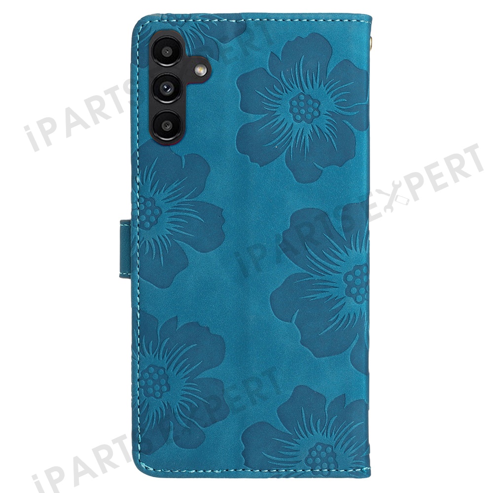 For Samsung Galaxy A56 5G Case Flower Design Leather Wallet Phone Cover with Wrist Strap - Blue