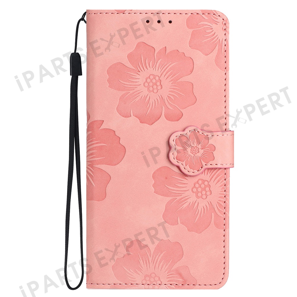 For Samsung Galaxy A56 5G Case Flower Design Leather Wallet Phone Cover with Wrist Strap - Pink