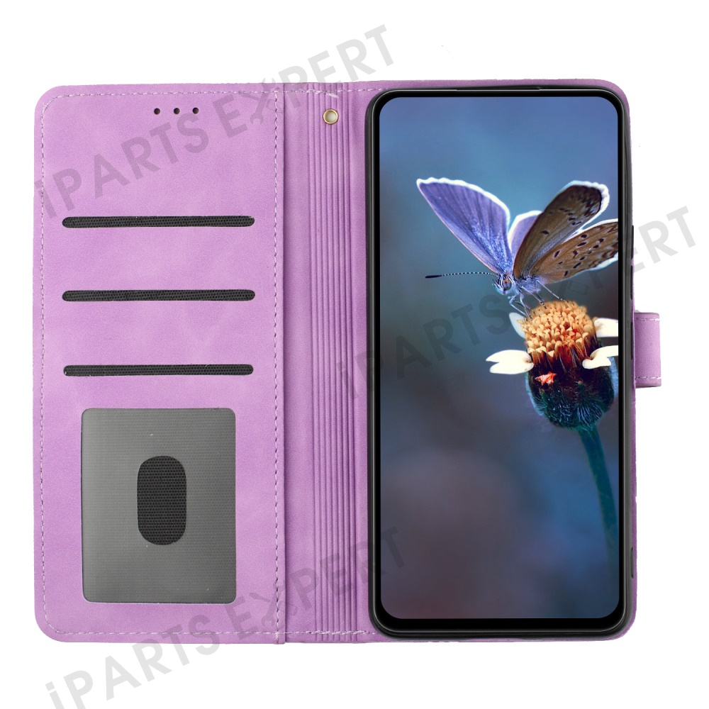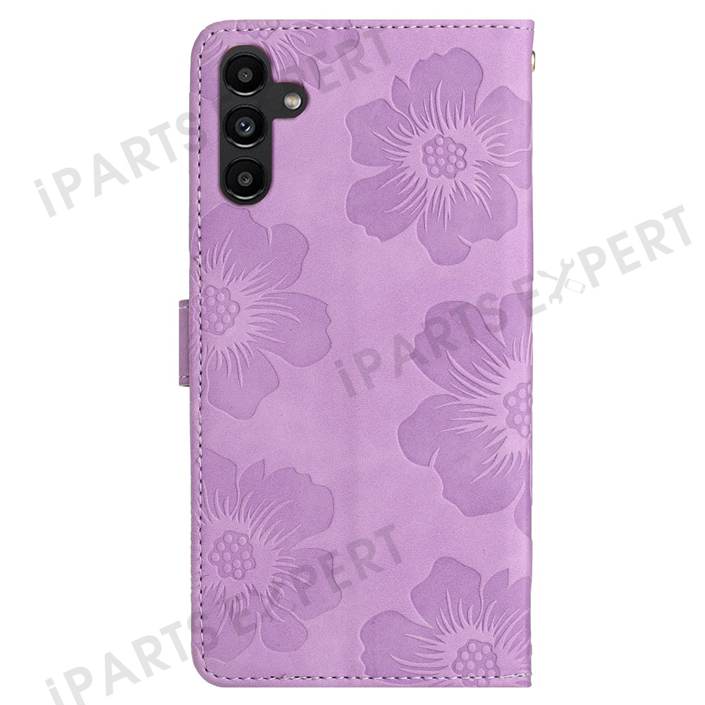 For Samsung Galaxy A56 5G Case Flower Design Leather Wallet Phone Cover with Wrist Strap - Purple