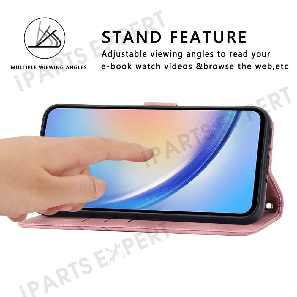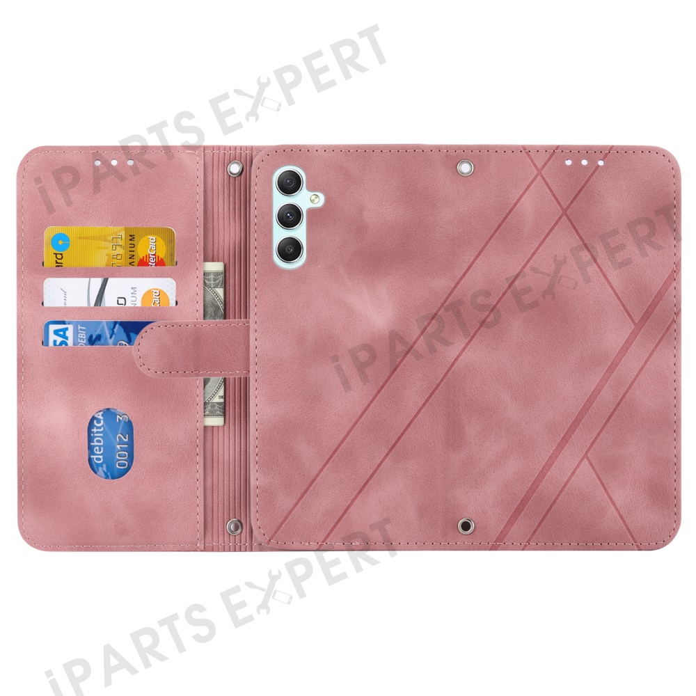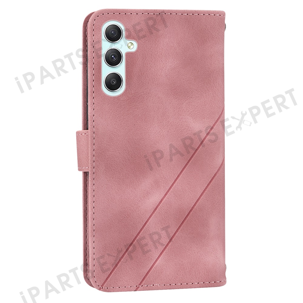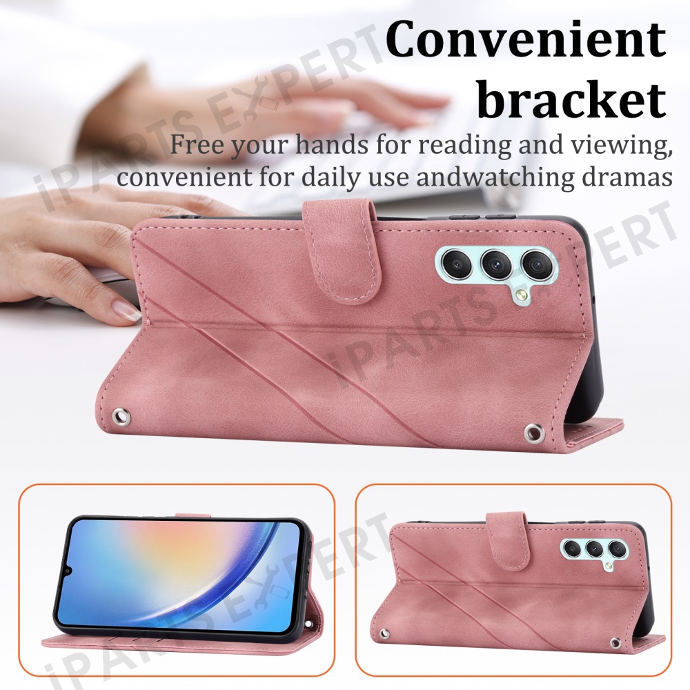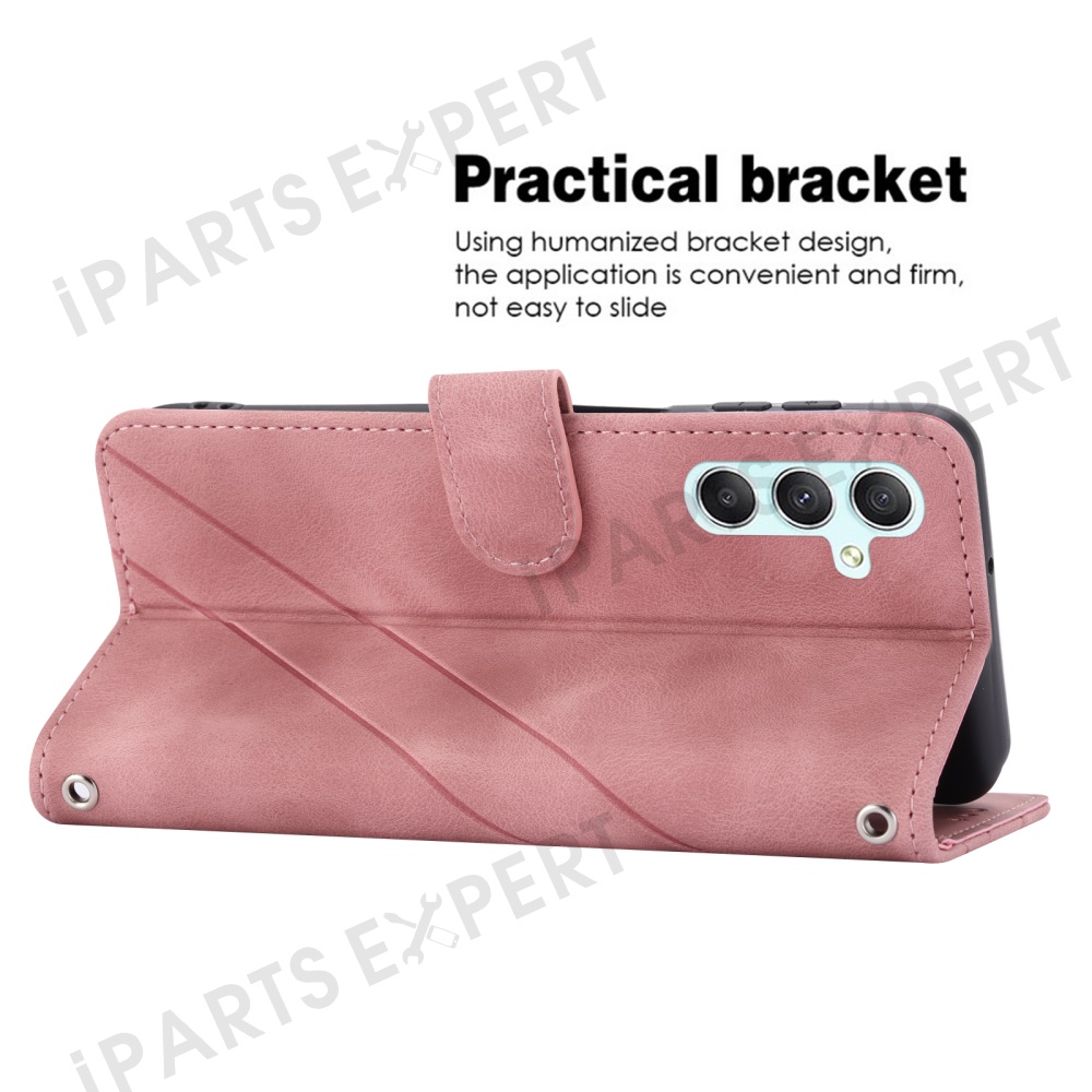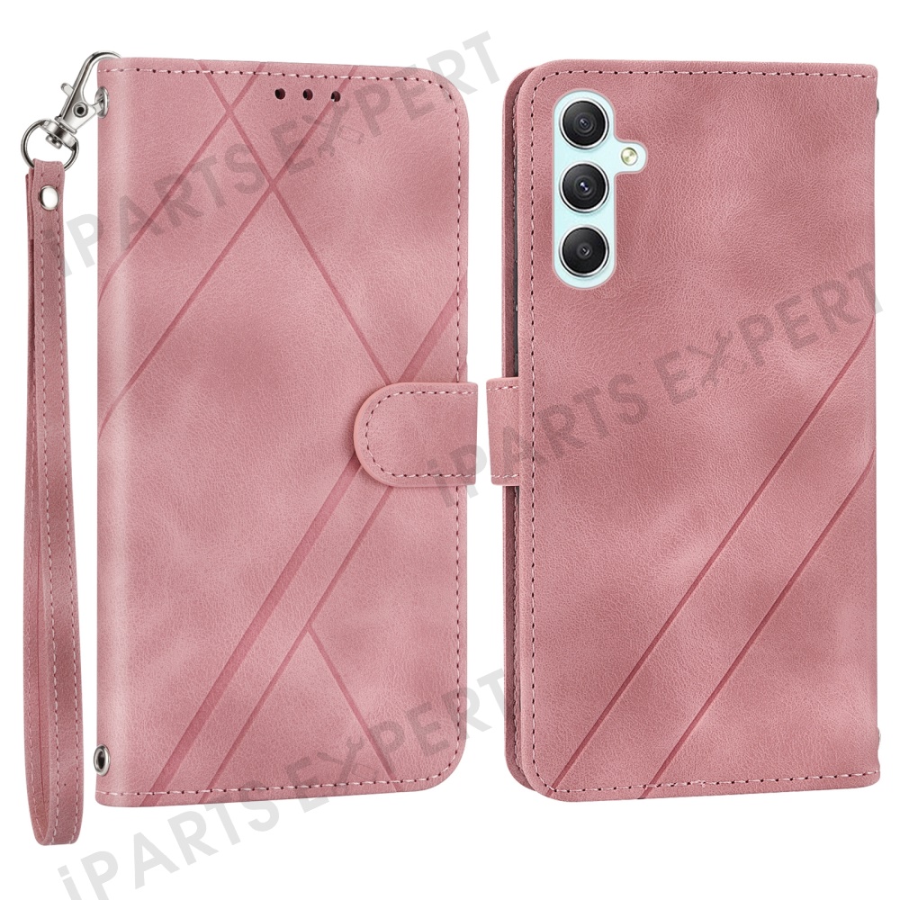 For Samsung Galaxy A56 5G Case Imprinted Line Leather Phone Cover with Handy Strap - Pink
