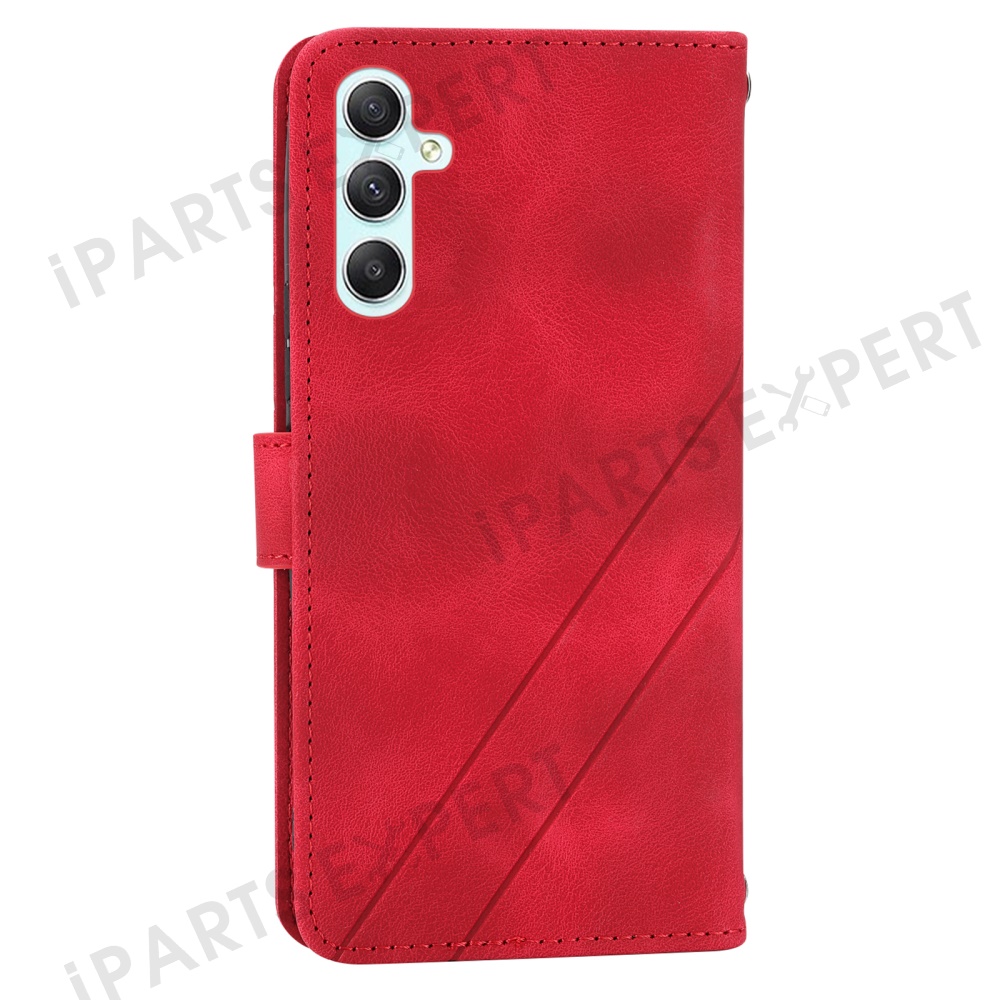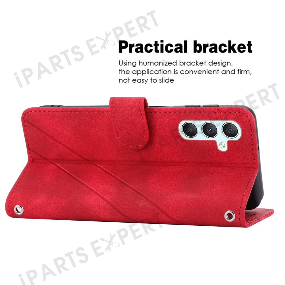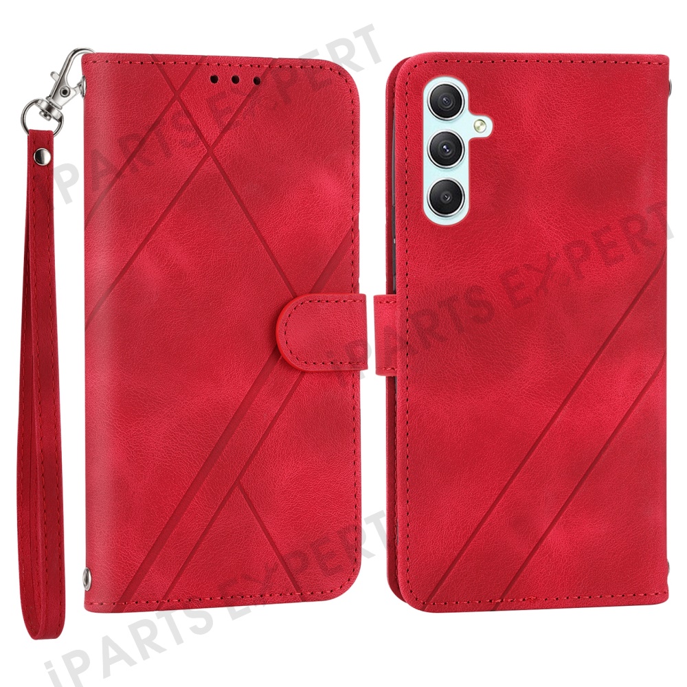 For Samsung Galaxy A56 5G Case Imprinted Line Leather Phone Cover with Handy Strap - Red