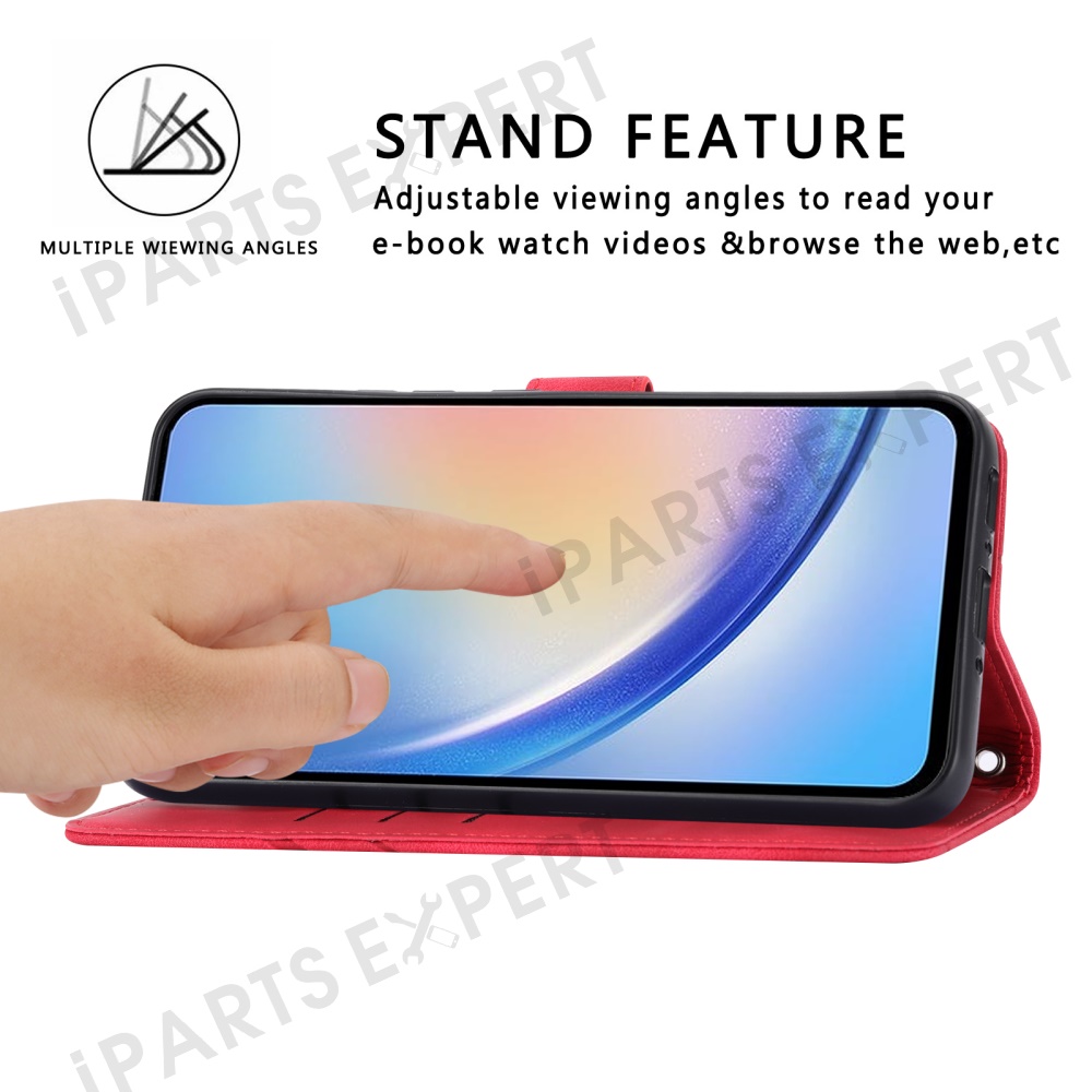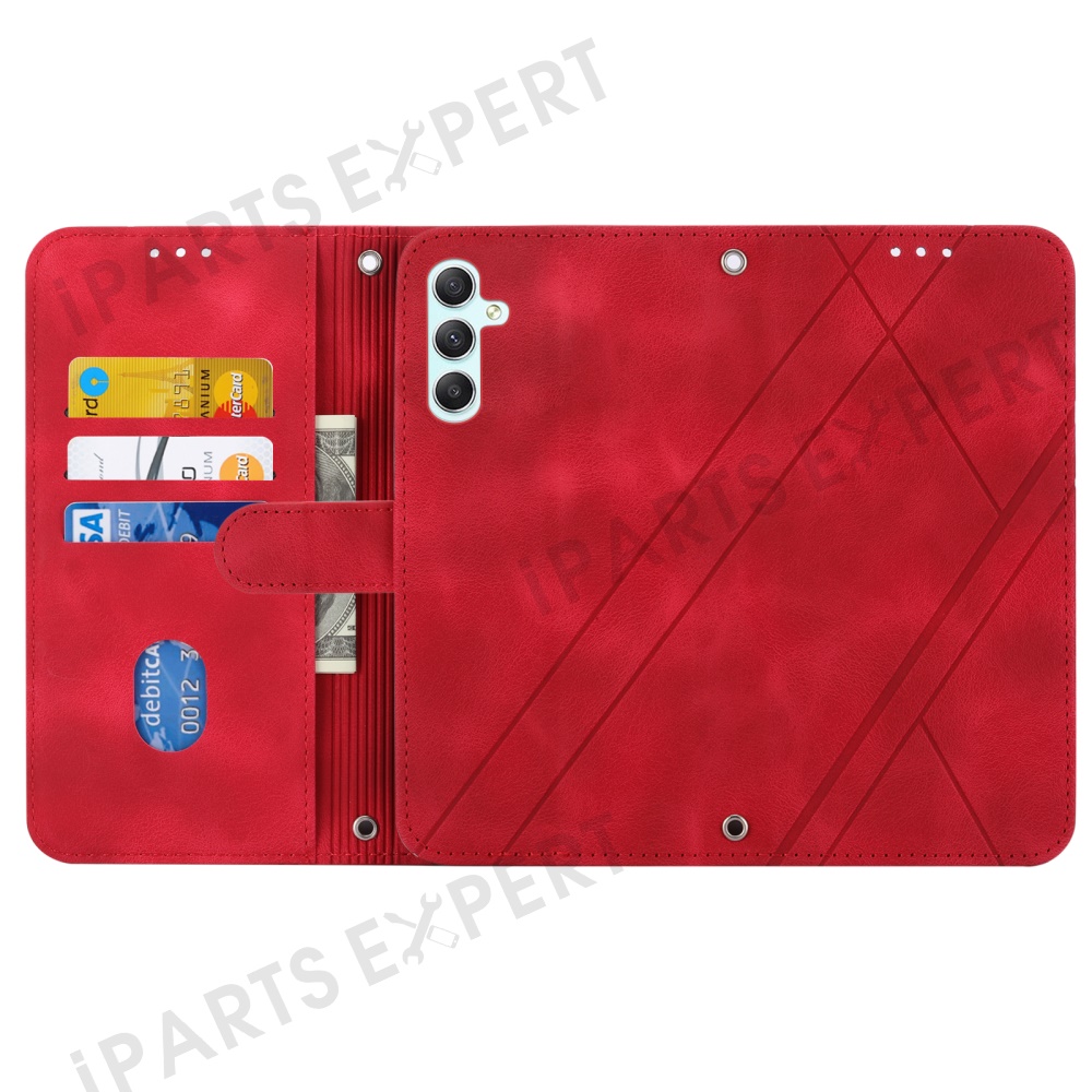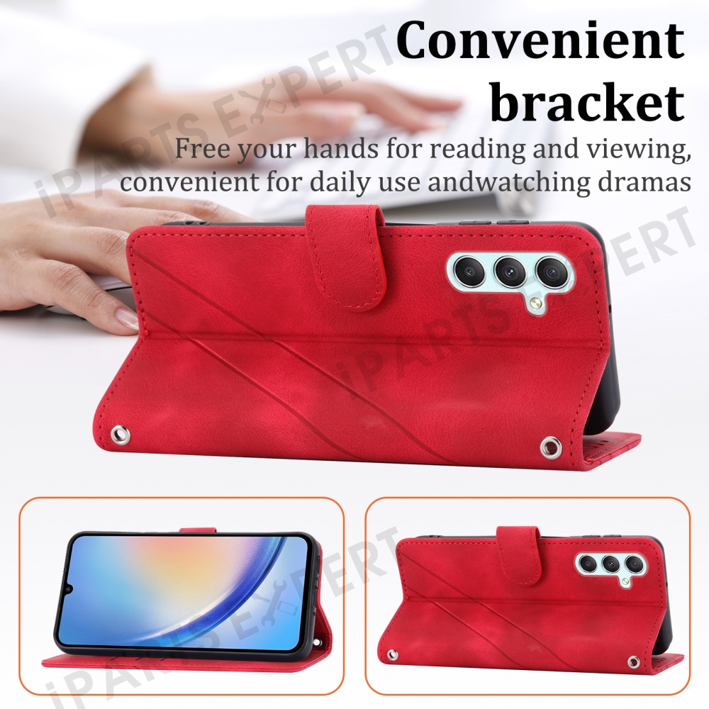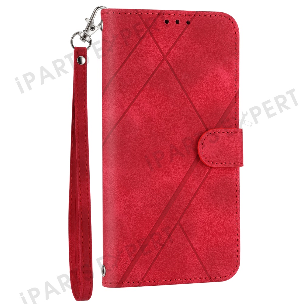 For Samsung Galaxy A56 5G Case Imprinted Line Leather Phone Cover with Handy Strap - Red