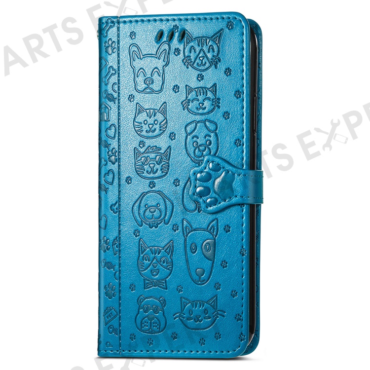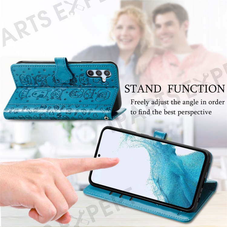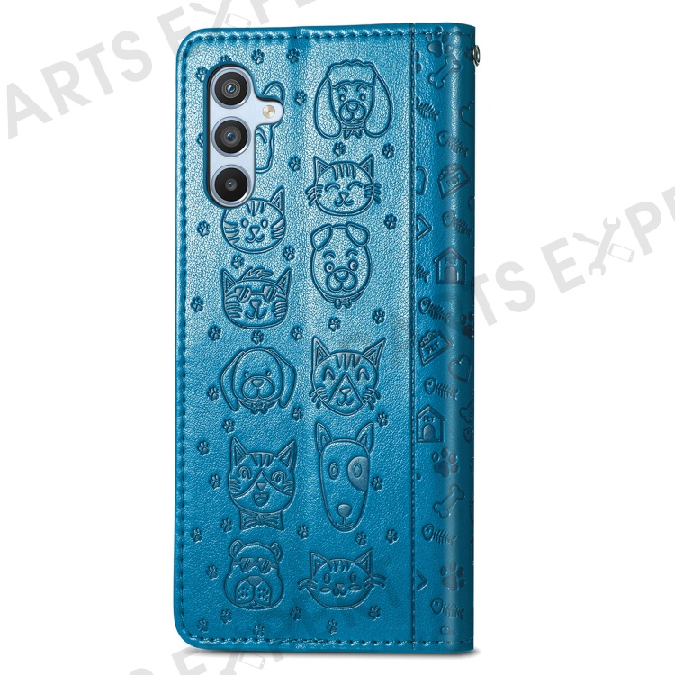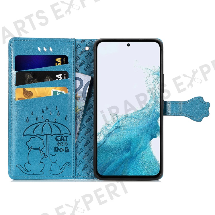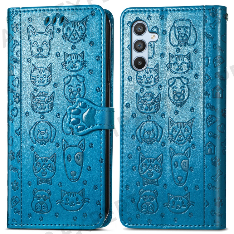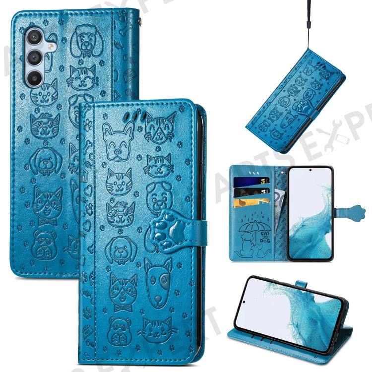 For Samsung Galaxy A56 5G Case Leather Wallet Flip Phone Cover Cute Cat Dog Pattern - Blue