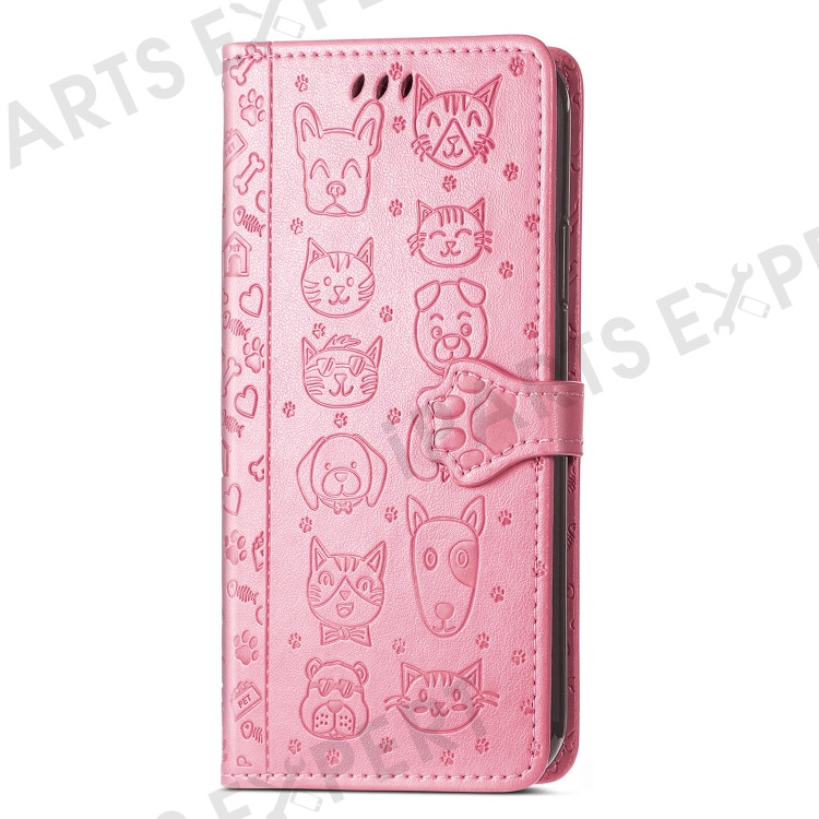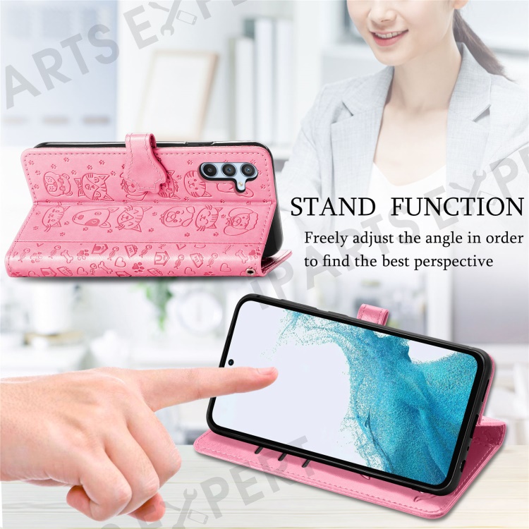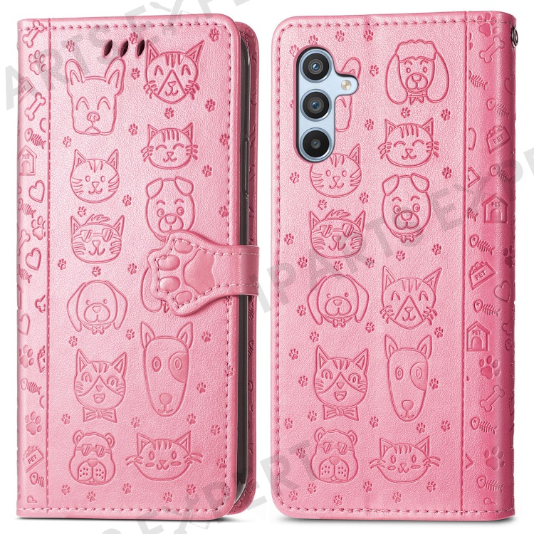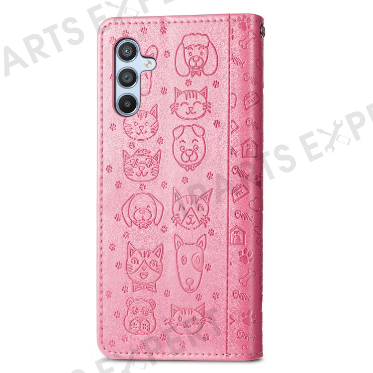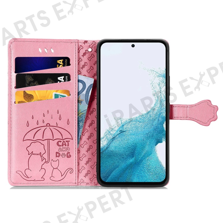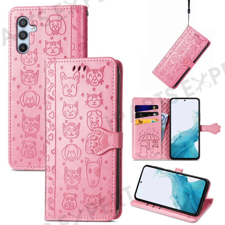For Samsung Galaxy A56 5G Case Leather Wallet Flip Phone Cover Cute Cat Dog Pattern - Pink