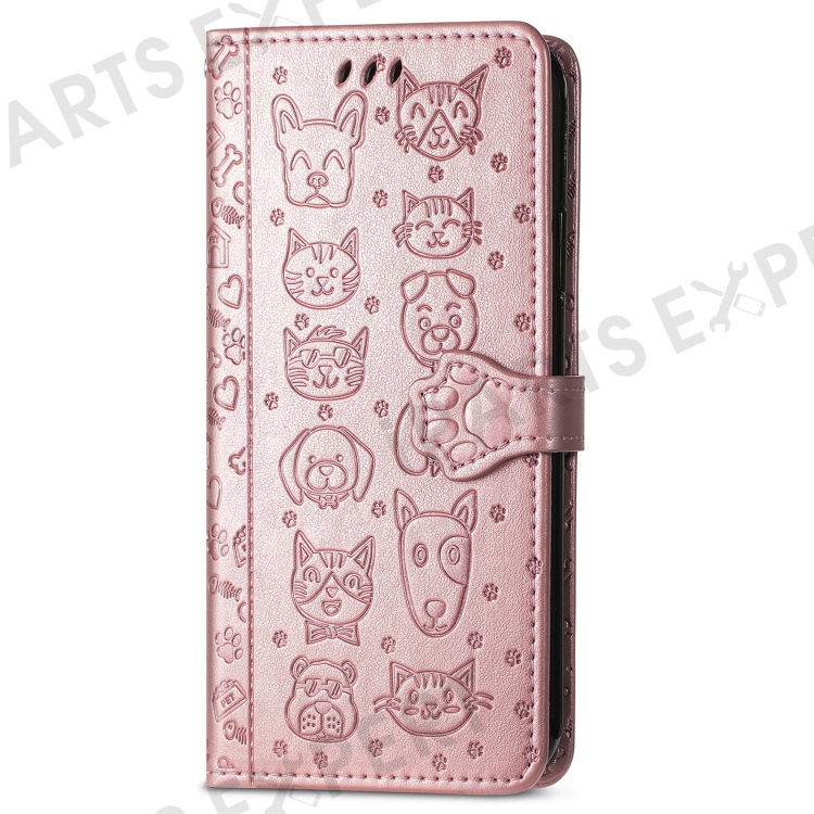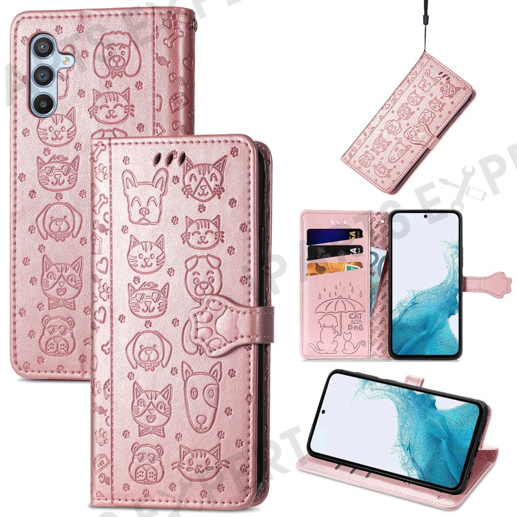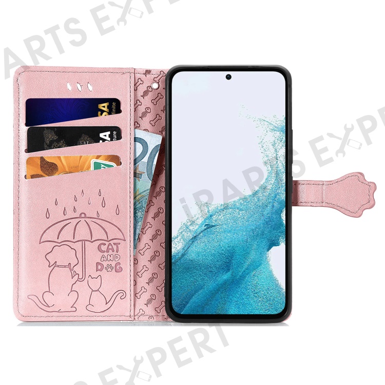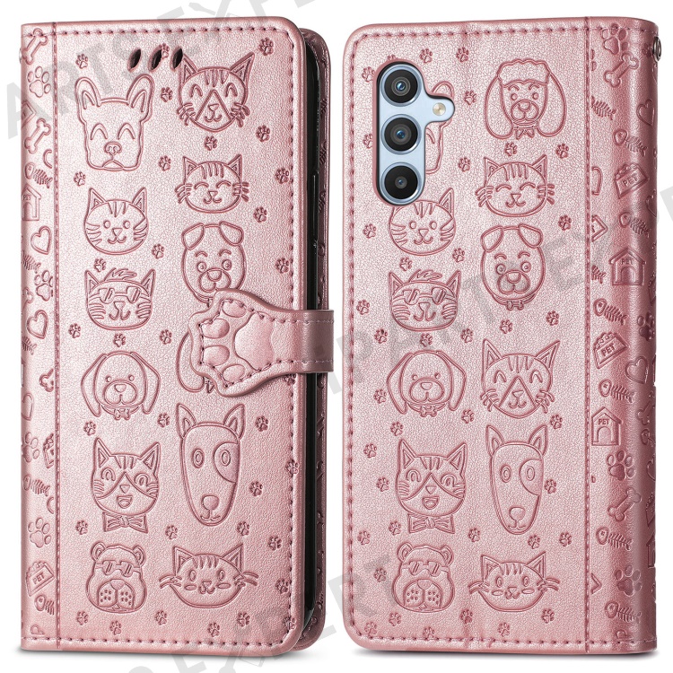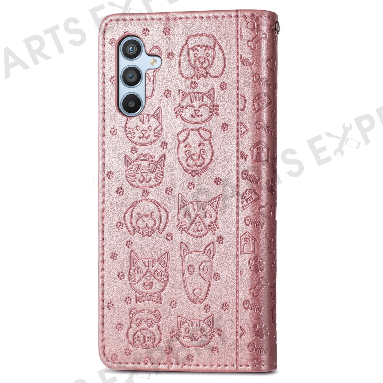 For Samsung Galaxy A56 5G Case Leather Wallet Flip Phone Cover Cute Cat Dog Pattern - Rose Gold