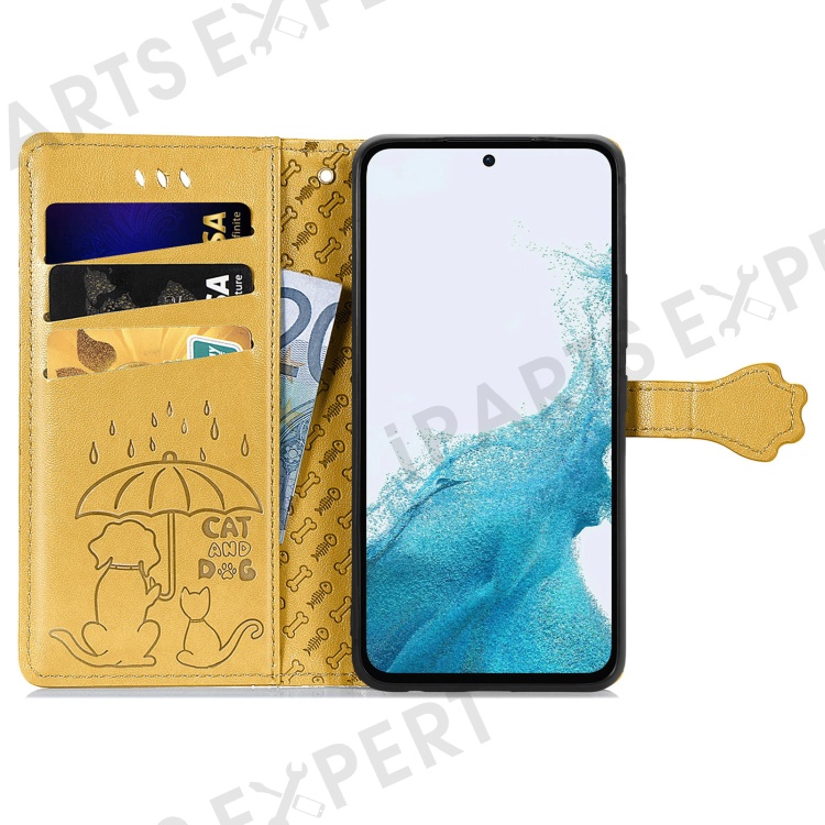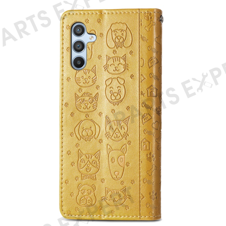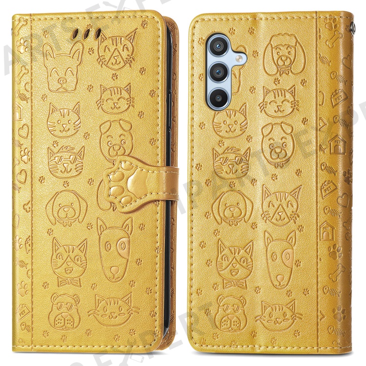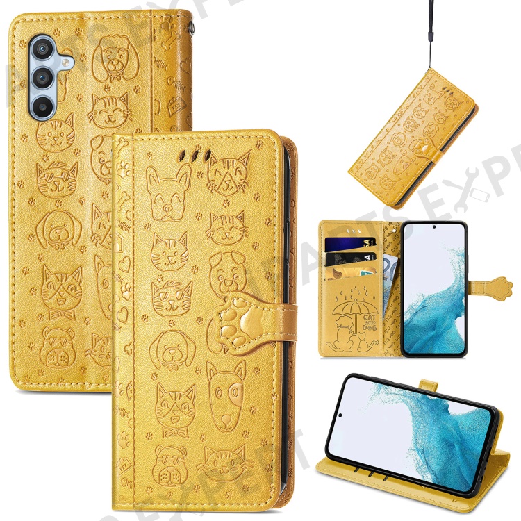 For Samsung Galaxy A56 5G Case Leather Wallet Flip Phone Cover Cute Cat Dog Pattern - Yellow