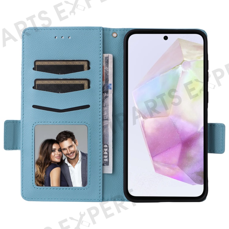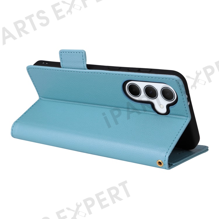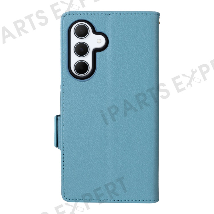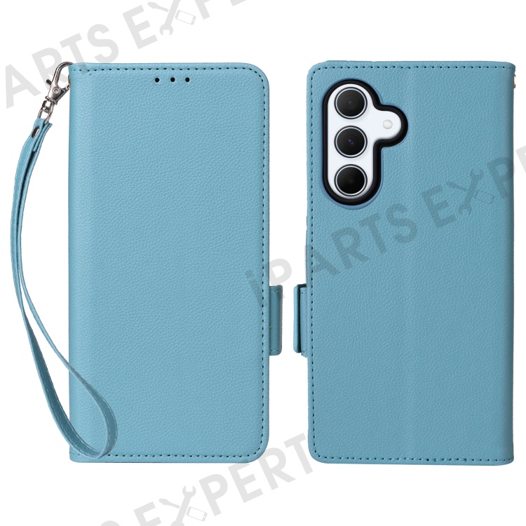 For Samsung Galaxy A56 5G Case with Wrist Strap Litchi Texture PU Leather Wallet Phone Cover - Baby Blue