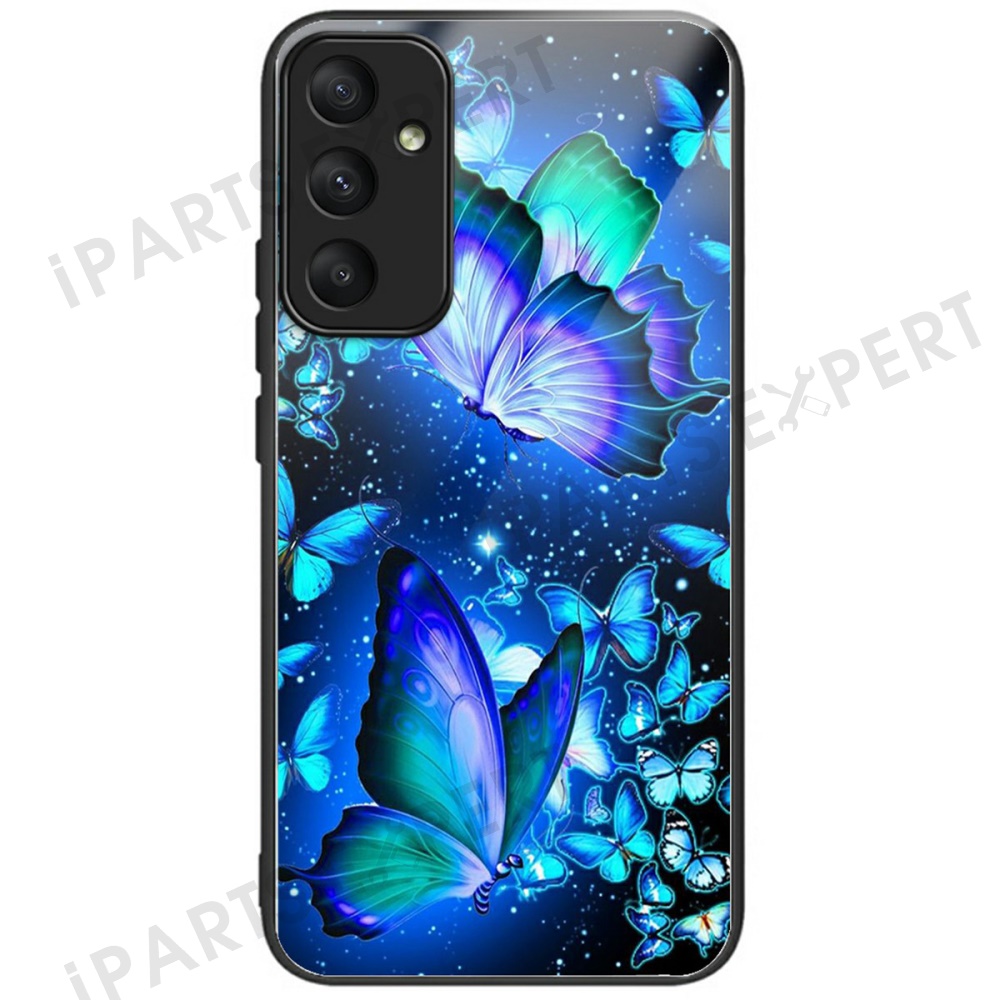 For Samsung Galaxy A56 5G Case Pattern Printing Tempered Glass TPU Drop-Proof Phone Cover - Blue Butterflies