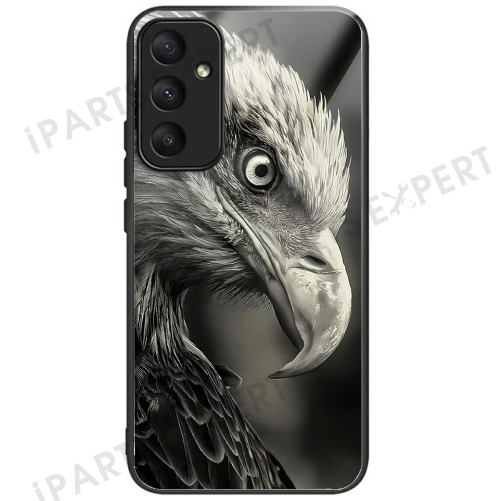 For Samsung Galaxy A56 5G Case Pattern Printing Tempered Glass TPU Drop-Proof Phone Cover - Gray Eagle