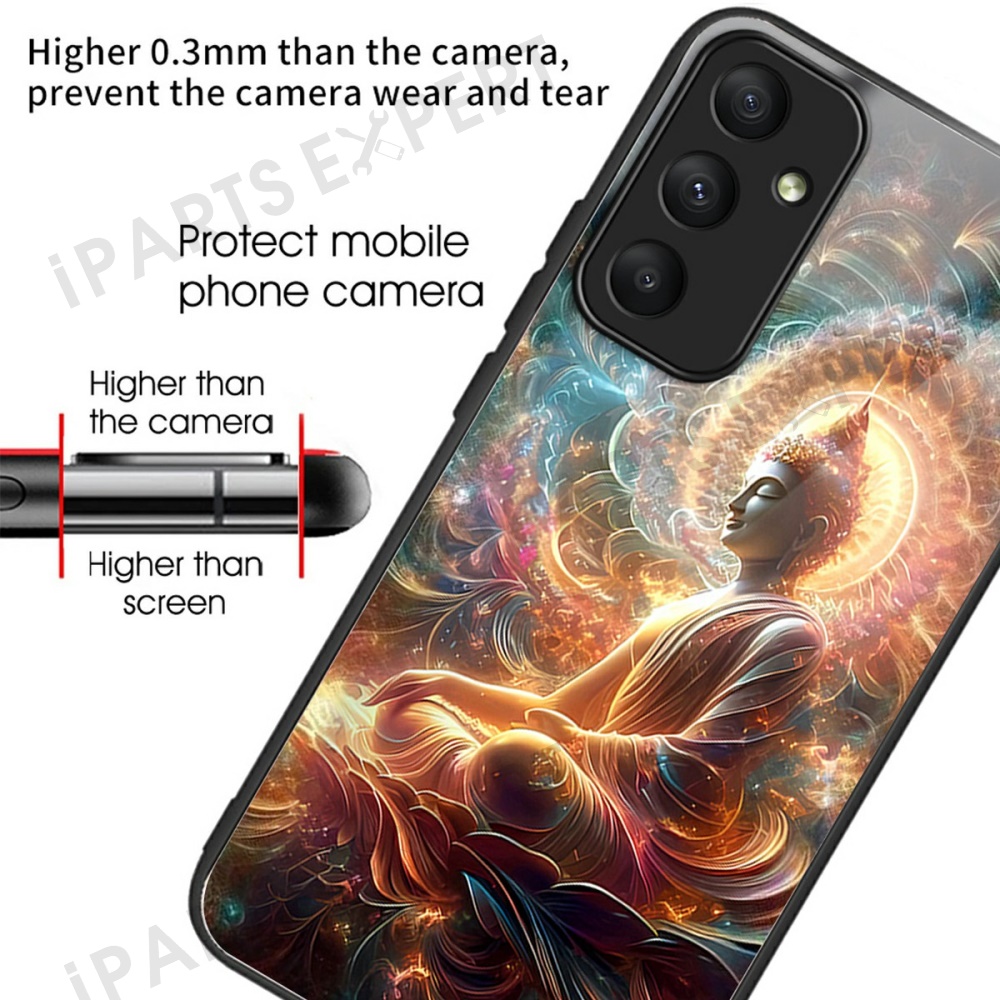 For Samsung Galaxy A56 5G Case Tempered Glass TPU Drop-Proof Pattern Printing Phone Cover - Colorful Buddha
