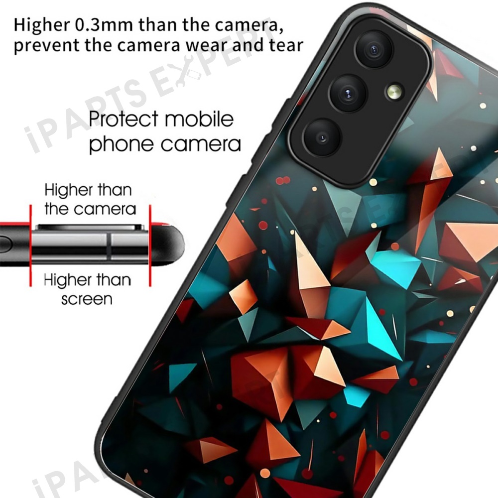 For Samsung Galaxy A56 5G Case Tempered Glass TPU Drop-Proof Pattern Printing Phone Cover - Colorful Diamond Pattern