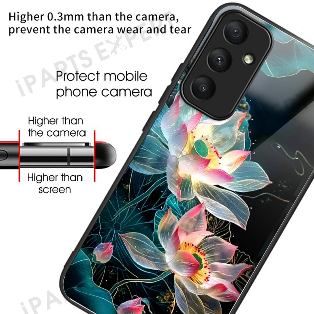 For Samsung Galaxy A56 5G Case Tempered Glass TPU Drop-Proof Pattern Printing Phone Cover - Crystal Lotus