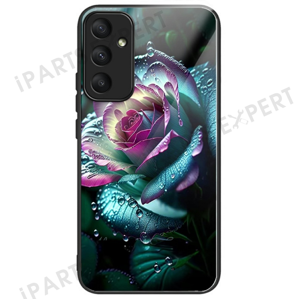 For Samsung Galaxy A56 5G Case Tempered Glass TPU Drop-Proof Pattern Printing Phone Cover - Moon Red Rose