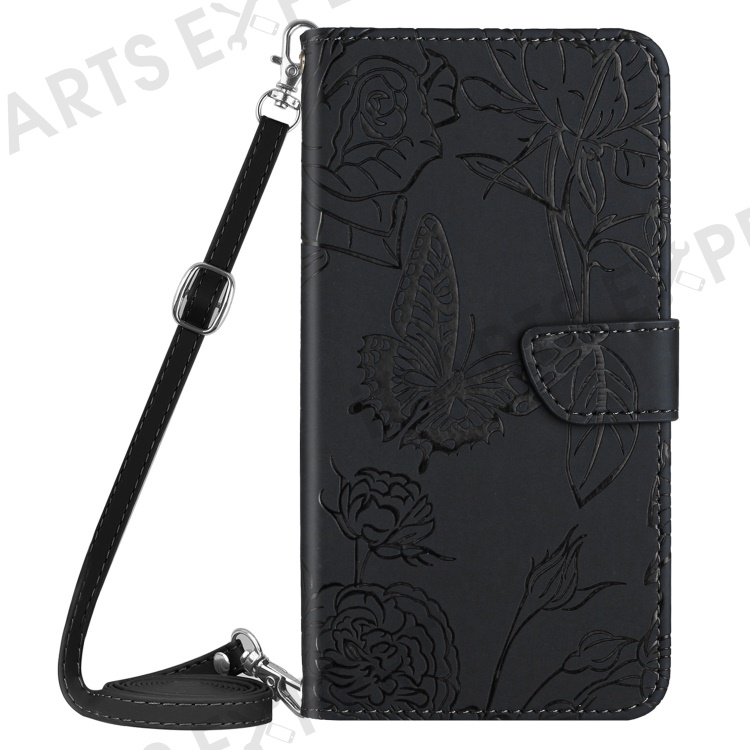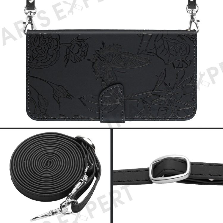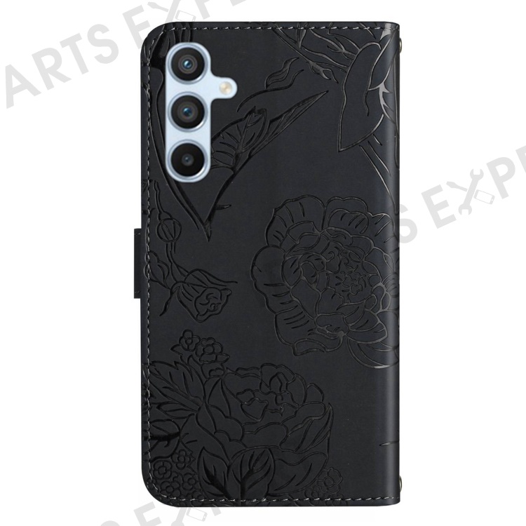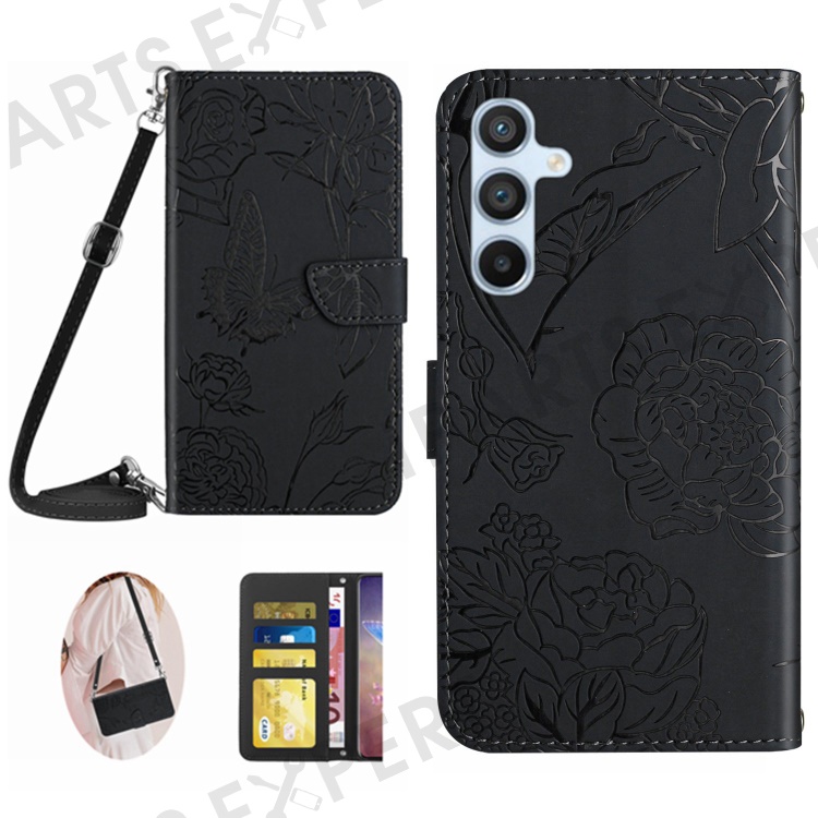 For Samsung Galaxy A56 5G / M56 5G Case Anti-Drop Leather Phone Cover Butterfly Flower Imprint - Black