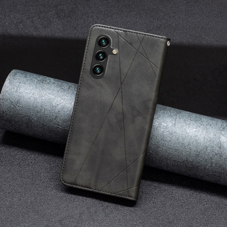 For Samsung Galaxy A56 5G Case Card Slots Geometry Imprint Leather Phone Cover - Black