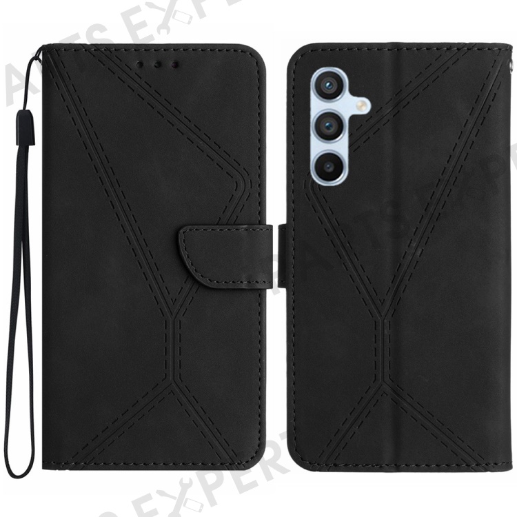 For Samsung Galaxy A56 5G / M56 5G Case Skin-Touch Lines PU Leather Flip Phone Cover - Black