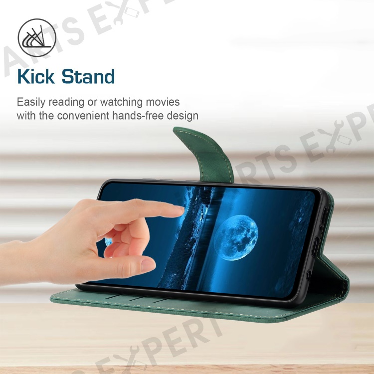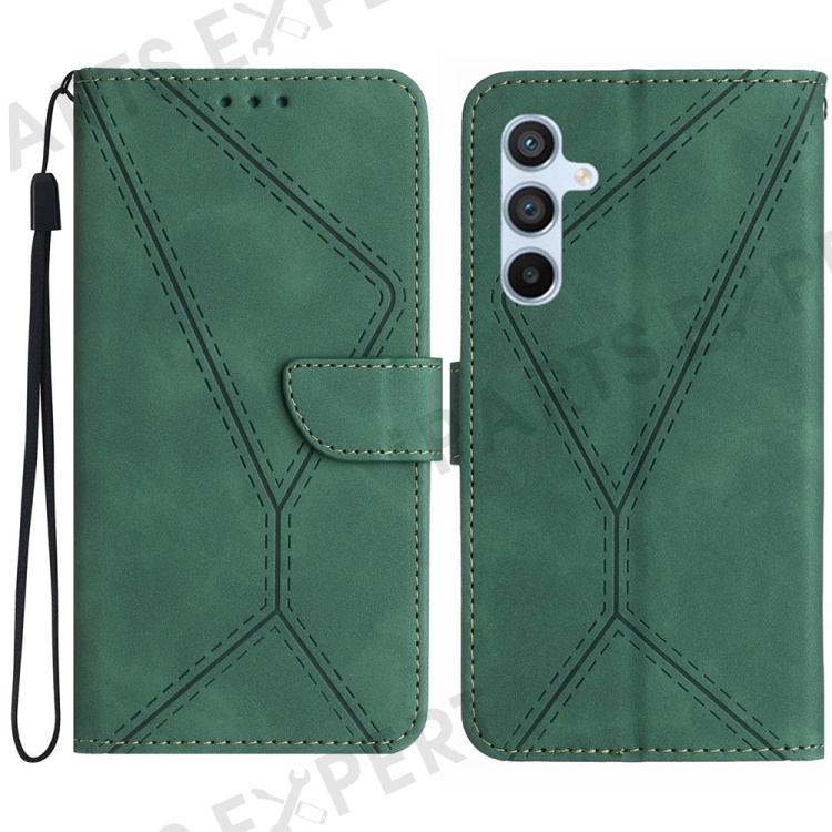 For Samsung Galaxy A56 5G / M56 5G Case Skin-Touch Lines PU Leather Flip Phone Cover - Green