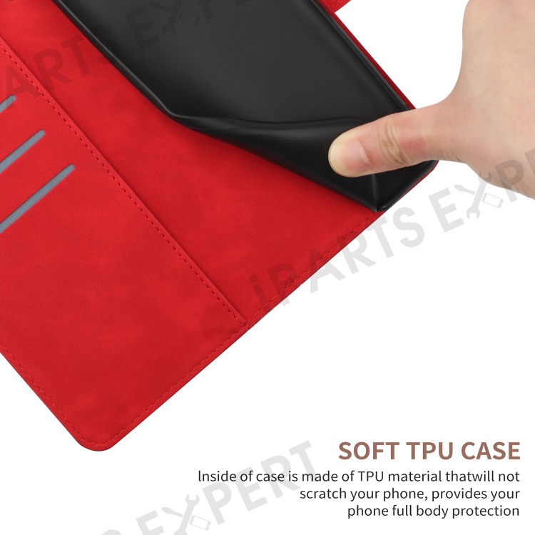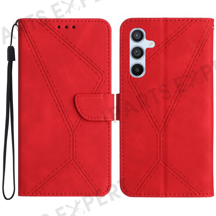 For Samsung Galaxy A56 5G / M56 5G Case Skin-Touch Lines PU Leather Flip Phone Cover - Red