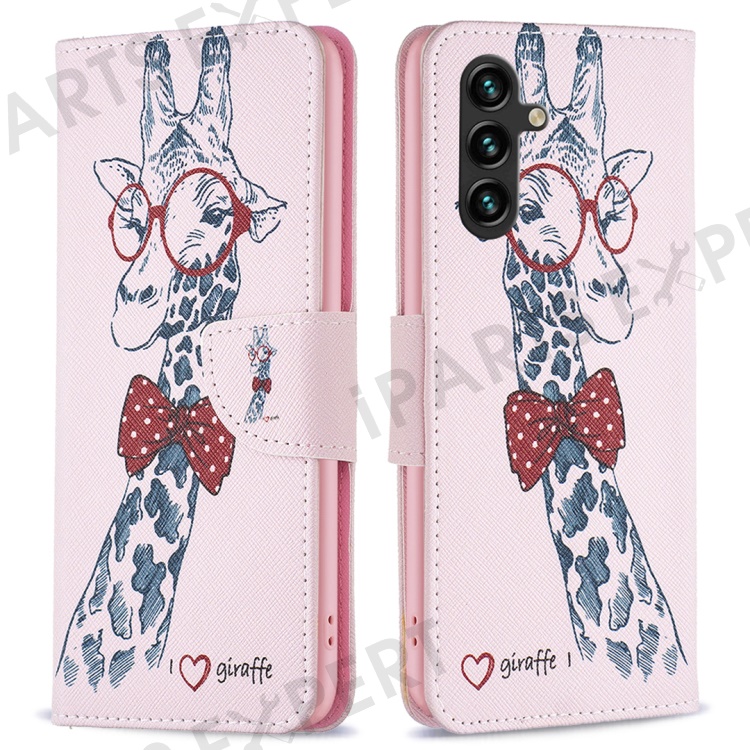 For Samsung Galaxy A56 5G Wallet Case Pattern Print Phone Leather Cover - Giraffe