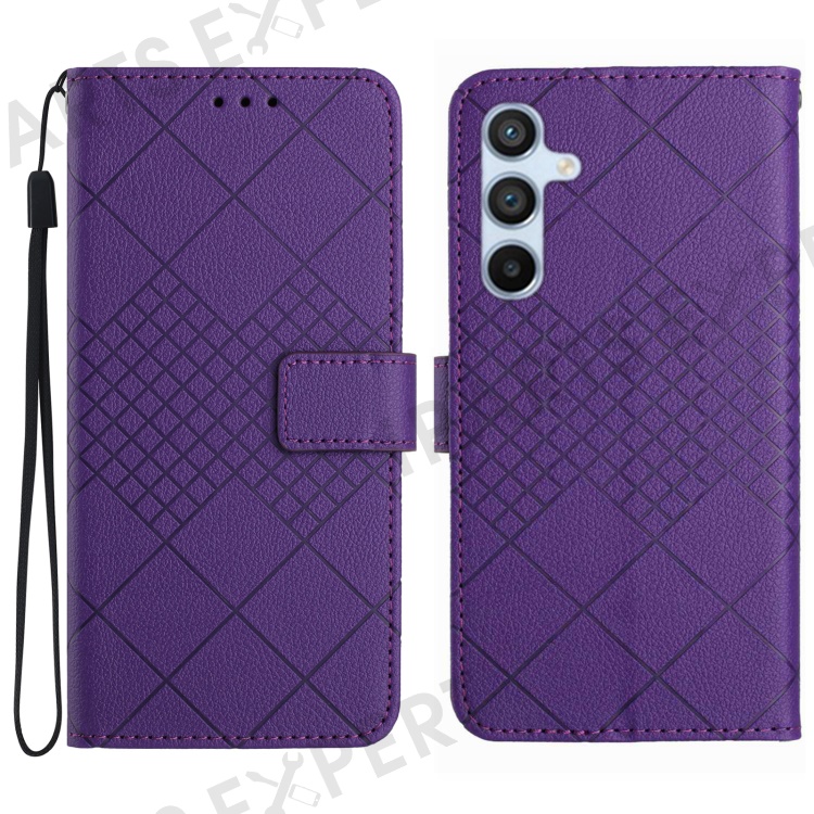 For Samsung Galaxy A56 5G / M56 5G Wallet Phone Case Imprint PU Leather Flip Folio Cover - Dark Purple