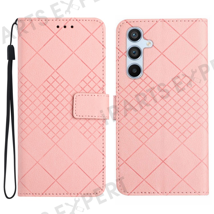 For Samsung Galaxy A56 5G / M56 5G Wallet Phone Case Imprint PU Leather Flip Folio Cover - Pink