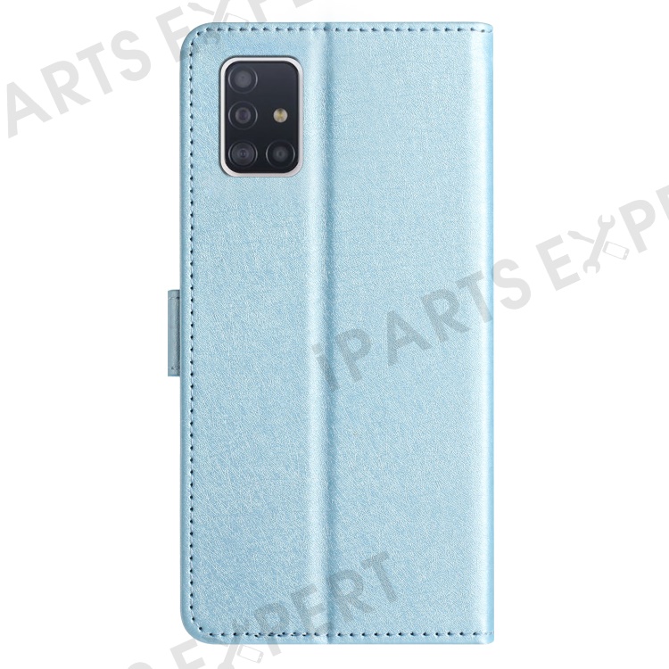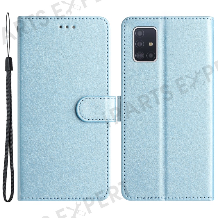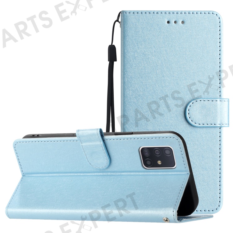 For Samsung Galaxy A71 4G SM-A715 Scratch Proof Leather Phone Wallet Stand Cover Silk Texture Case - Sky Blue